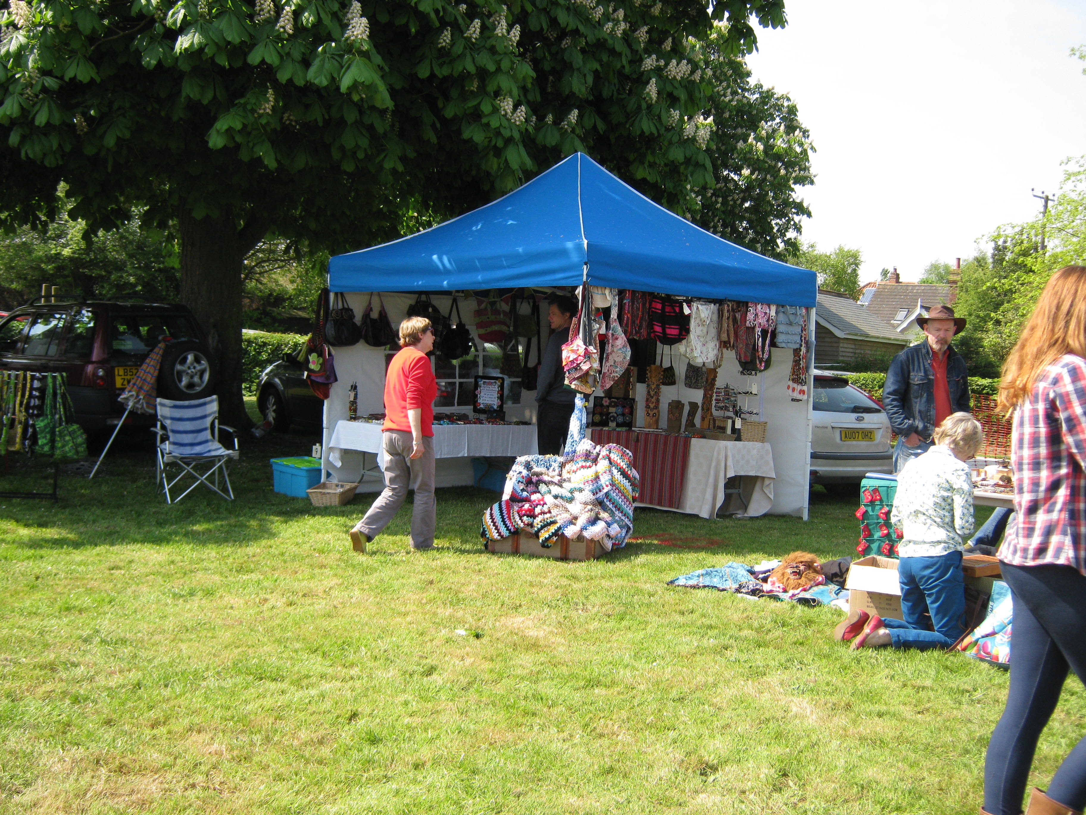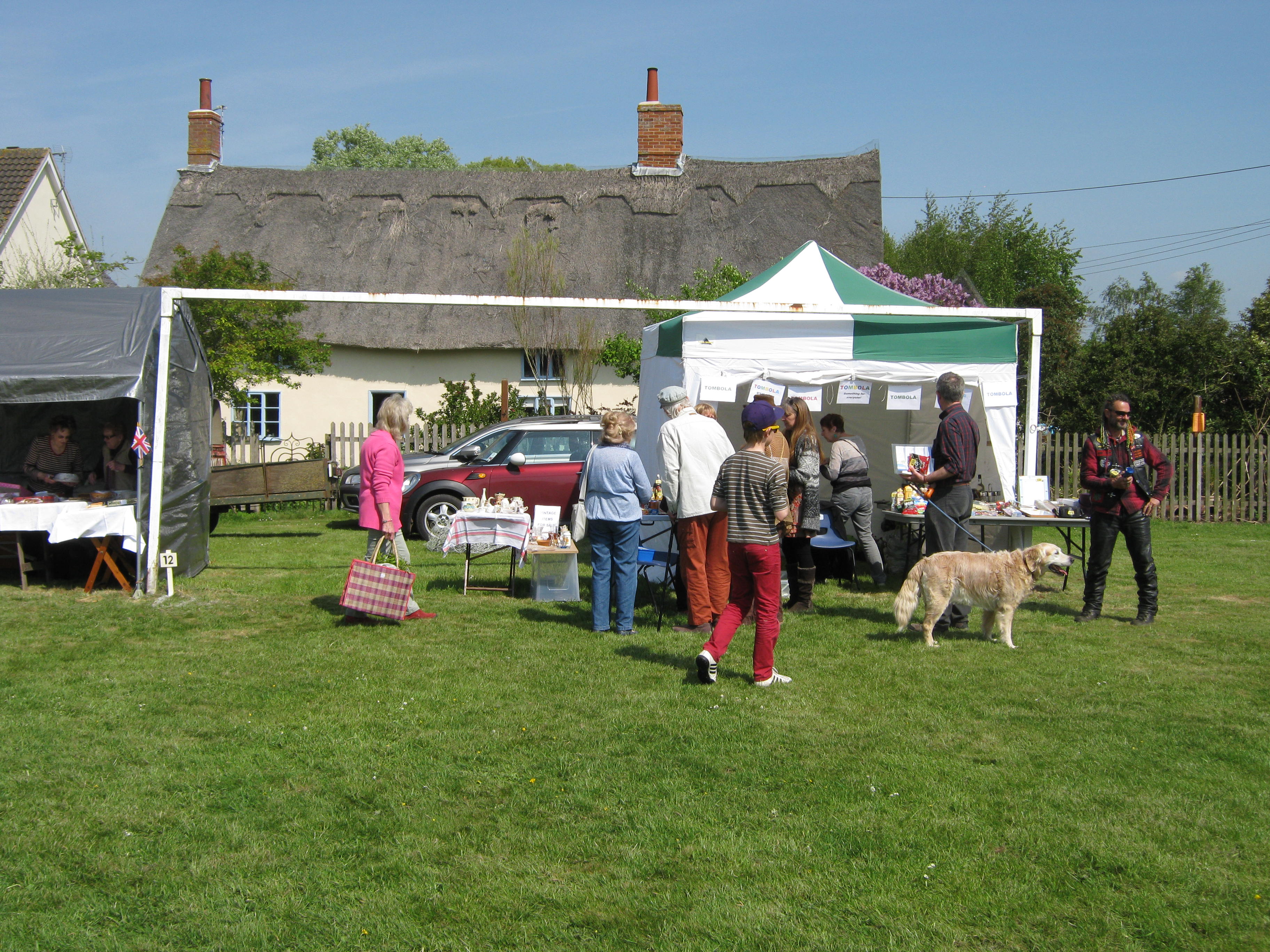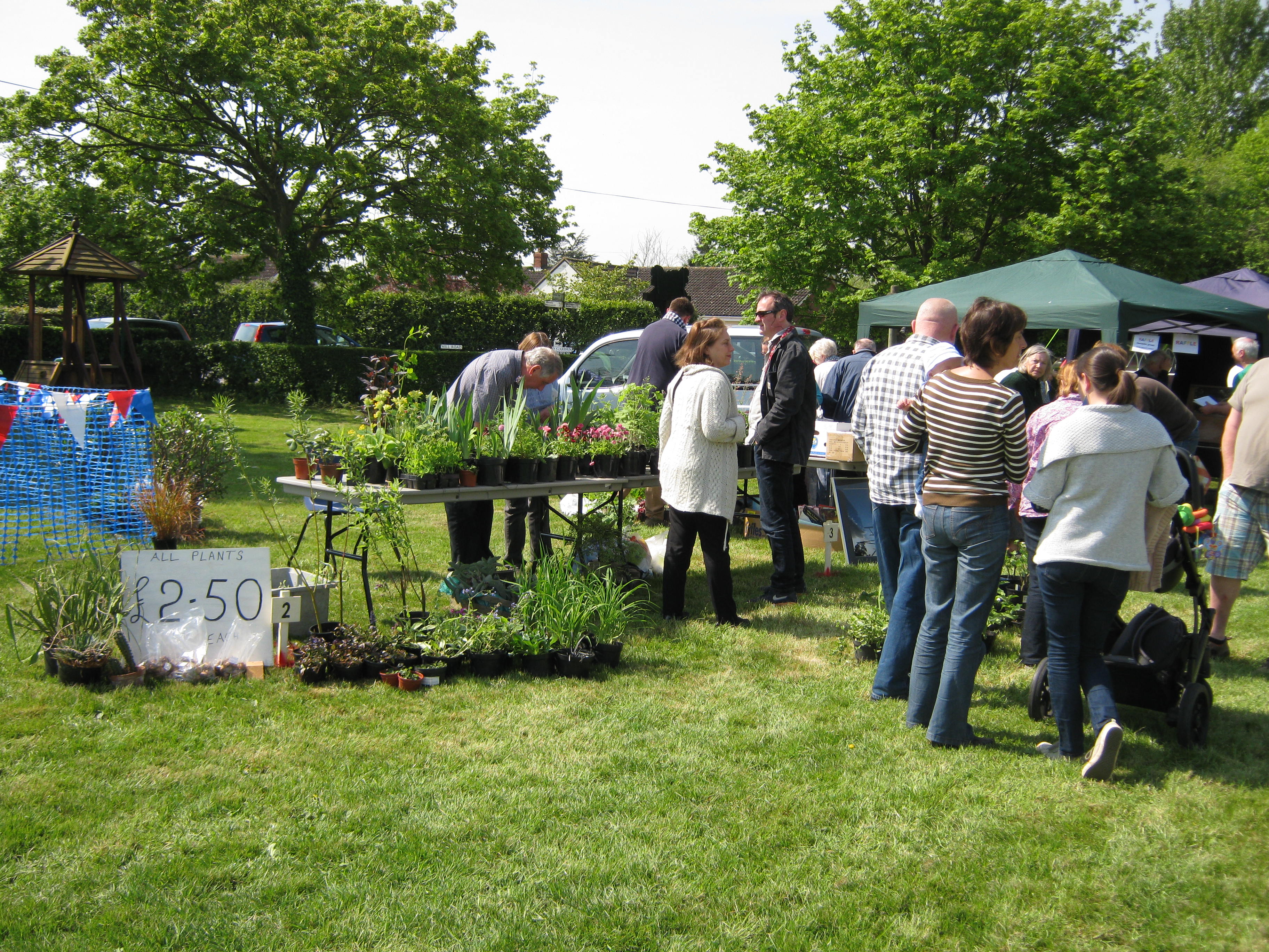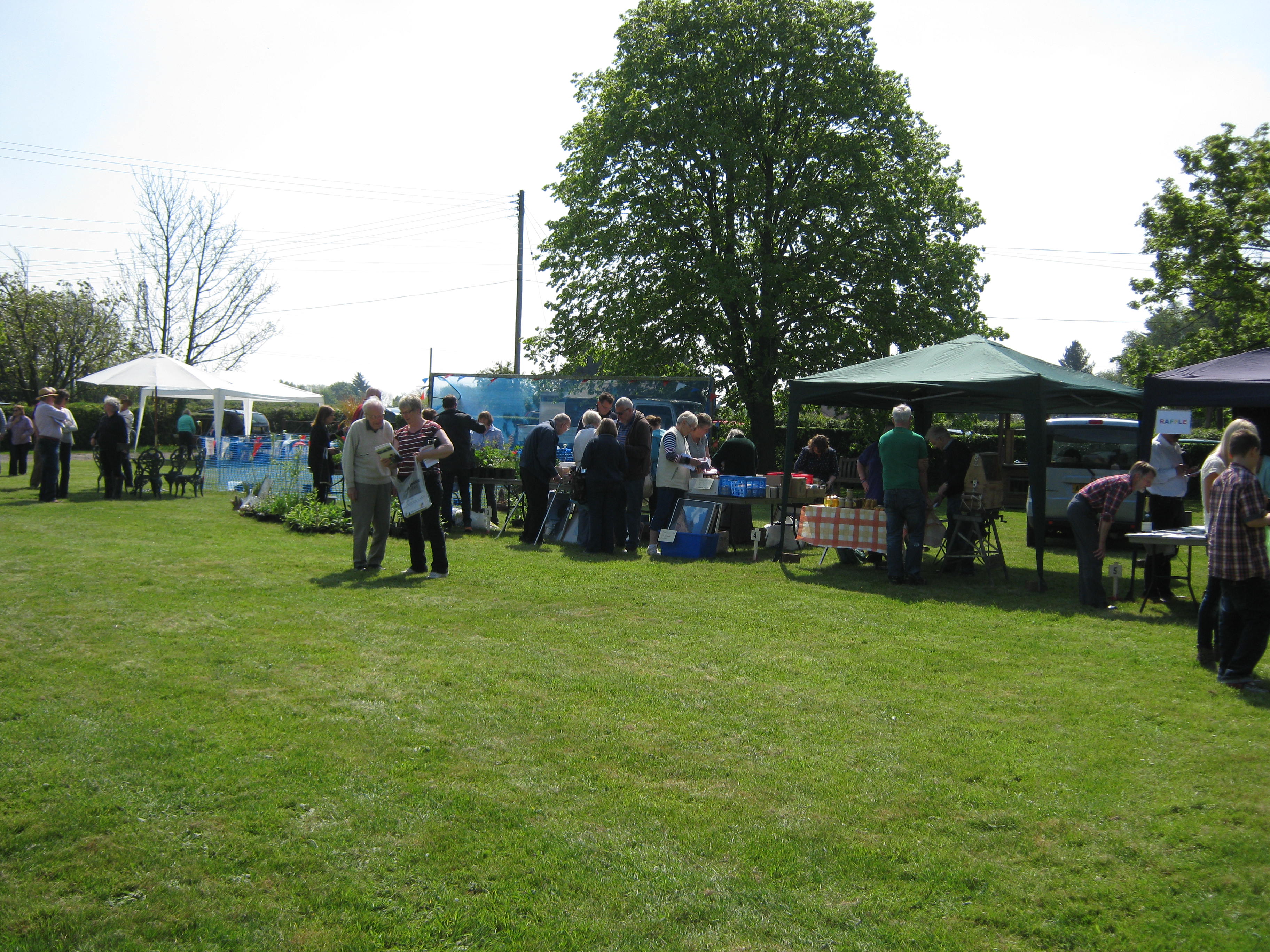 The fete began at 11.00am so R and I arrived just before then, so that we could hand over our contributions in good time (R had pulled some rhubarb yesterday morning and brought that along too) and then have a tour of the stalls before the crowds arrived.  The weather was perfect – lots of sunshine, a fairly gentle breeze and also nicely warm.