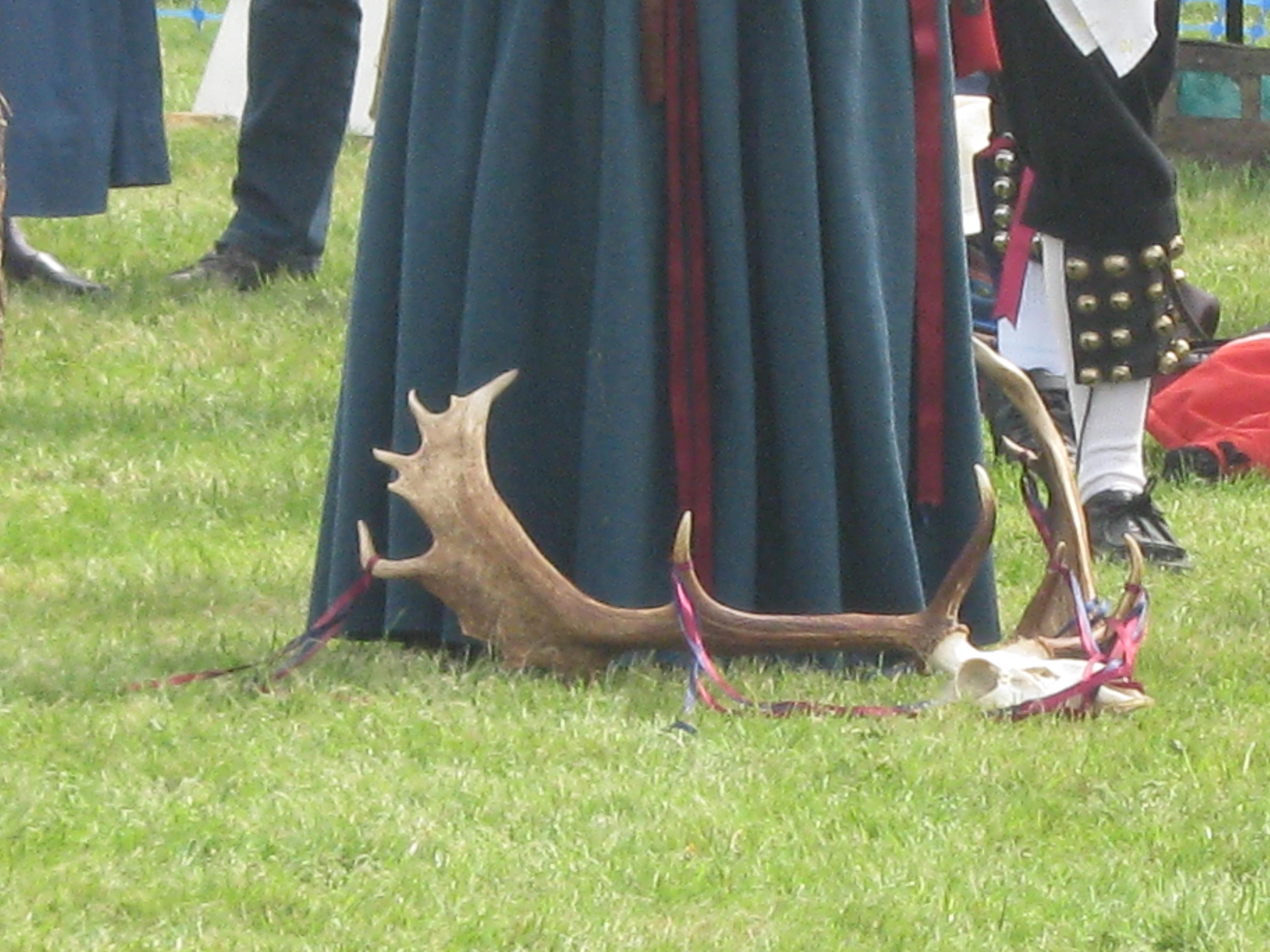 The antlers they always bring with them.  The local pub is called the Rumburgh Buck and that is where they meet.  The last time I saw these antlers was in the church a couple of weeks before Christmas.  We have a Carols and Capers service with folk carols and morris dancing (a caper is a morris dance move – a leap).