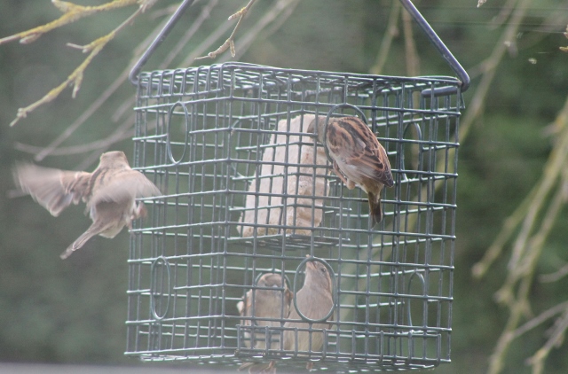 House Sparrows on fat feeder