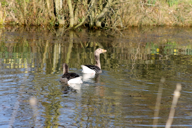 Greylag pair on the pond