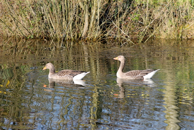 Greylags on the pond