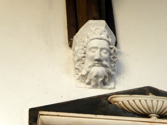 Carved head on an arch stop