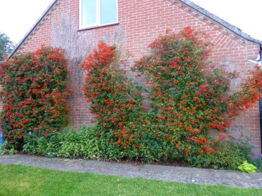 Pyracantha covered with scarlet berries. I have just finished pruning our pyracantha and have got it neat and tidy for winter.