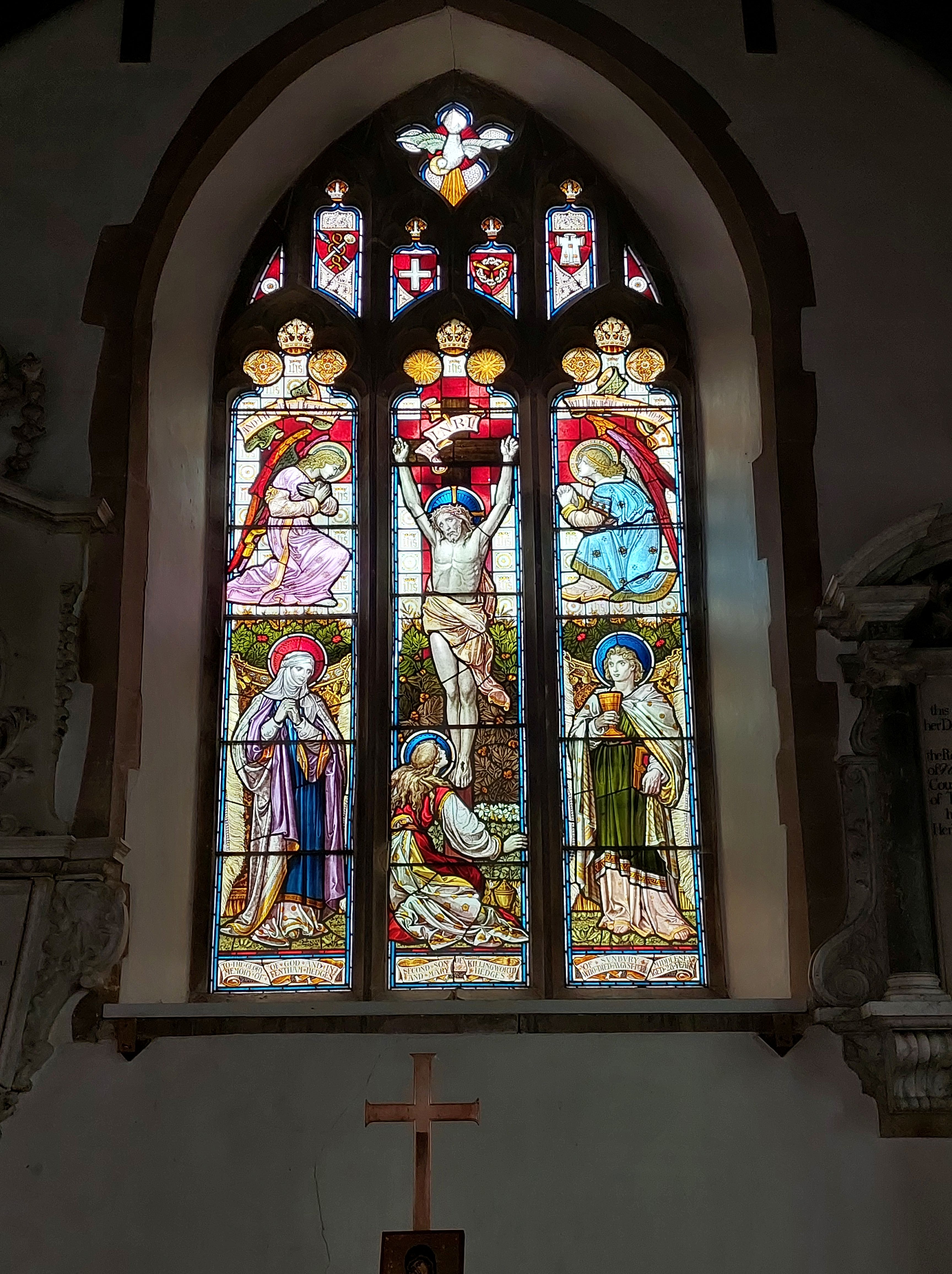 In 1892 the East end of the church was rebuilt.  During the dismantling of the roof the rood beam was discovered intact and to still have its original paint and gilding.  The whitewashed Doom was removed plank by plank and thrown out into the churchyard for later destruction.  Fortunately, it rained heavily during that night and in the morning the painting underneath was beginning to emerge from under the whitewash.  The whole Doom was cleaned and experts were called in to assess its provenance.  The Doom was put on display and people paid to see it; the proceeds of which helped to pay for the rebuilding of the roof and the church was then able to get even more repairs done.  The new chancel arch was too narrow for the Doom to be replaced in its old position so for a while it was put on the West wall of the church where there was a gallery.  The gallery was removed in 1927 so that the Doom could be seen more easily and sometime later the Doom was placed where it is now on the North wall.