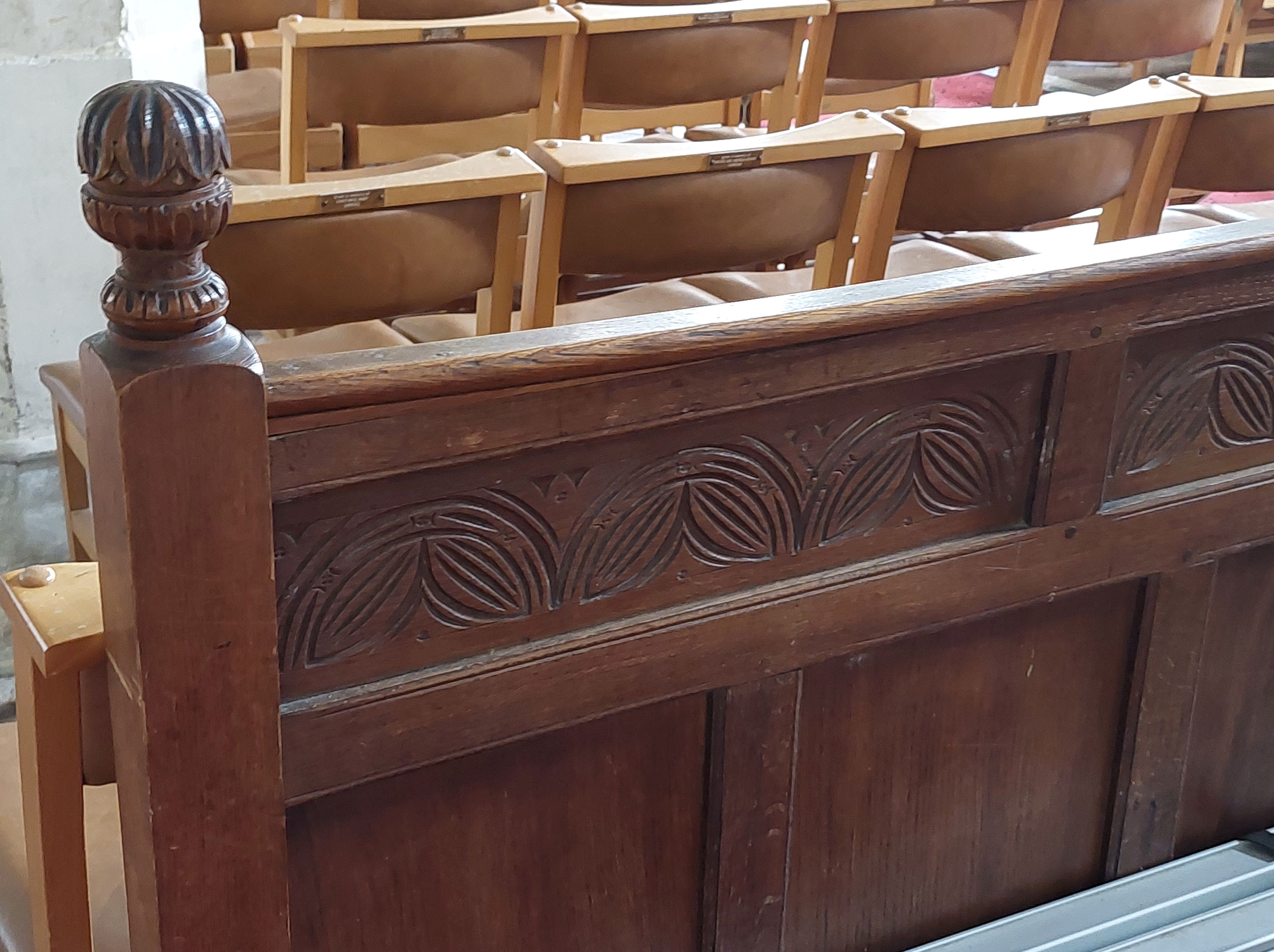 The Doom is a representation of the Last Judgement.  It was probably painted in about 1520 or just before then, the date partly based on the style of the Virgin Mary’s bodice as depicted in the Doom. The villagers had started saving for the work to be done during the 1480’s. Dooms were usually placed on the chancel arch which separates the Nave where the common people worship – the Church Militant – and the Chancel, where the priests lead the worship – the Church Triumphant.  A rood screen was often placed at the chancel arch, which added to the seclusion of the chancel, and the sculpted or carved figures of Our Lord on the Cross with the Virgin Mary on one side and St John the Baptist on the other were placed on the top of the rood beam.  In this church the figures of the rood were attached to the Doom.  The figures have long since disappeared but their position and shape can be seen by the blank spaces on the Doom painting.