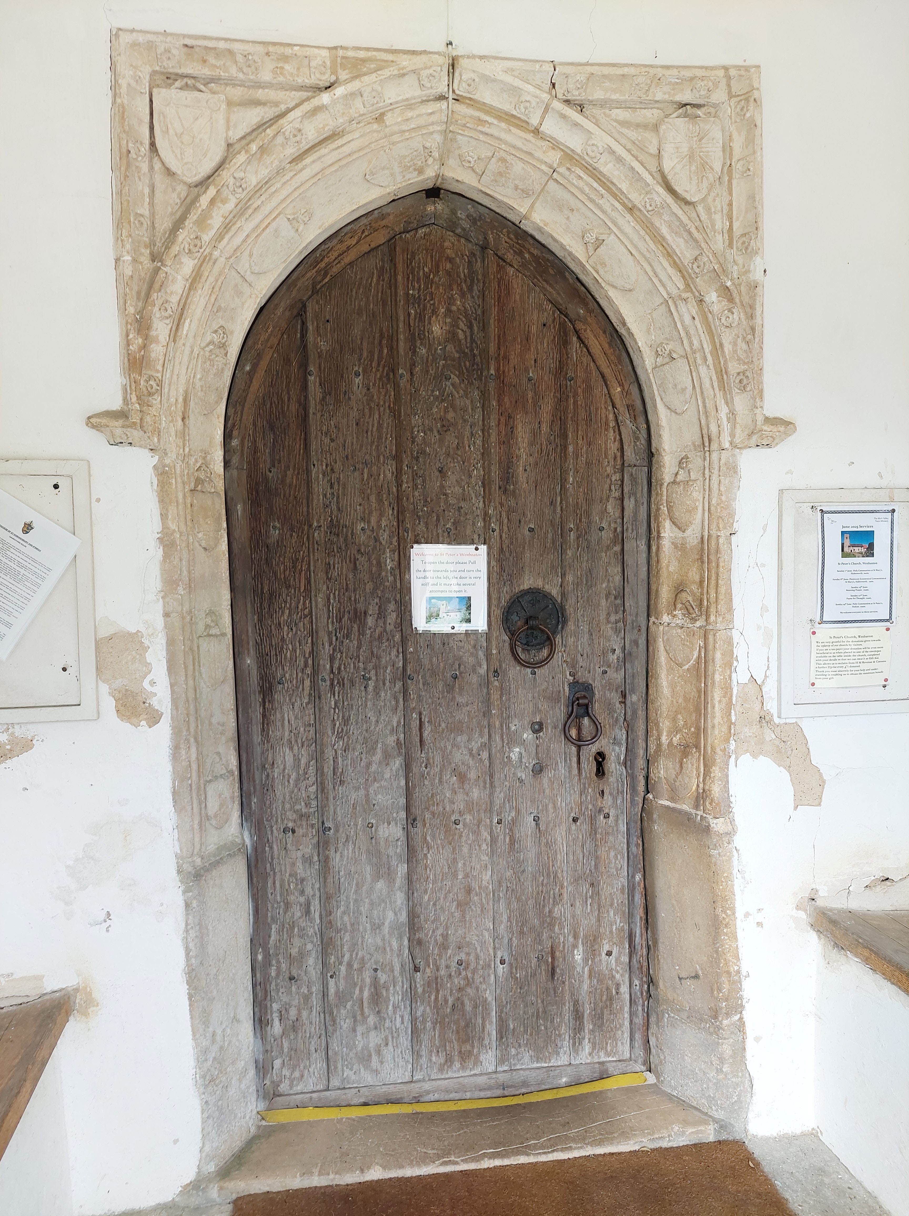 The outside of the South door, the main entrance to the church. The door retains the medieval sanctuary knocker.