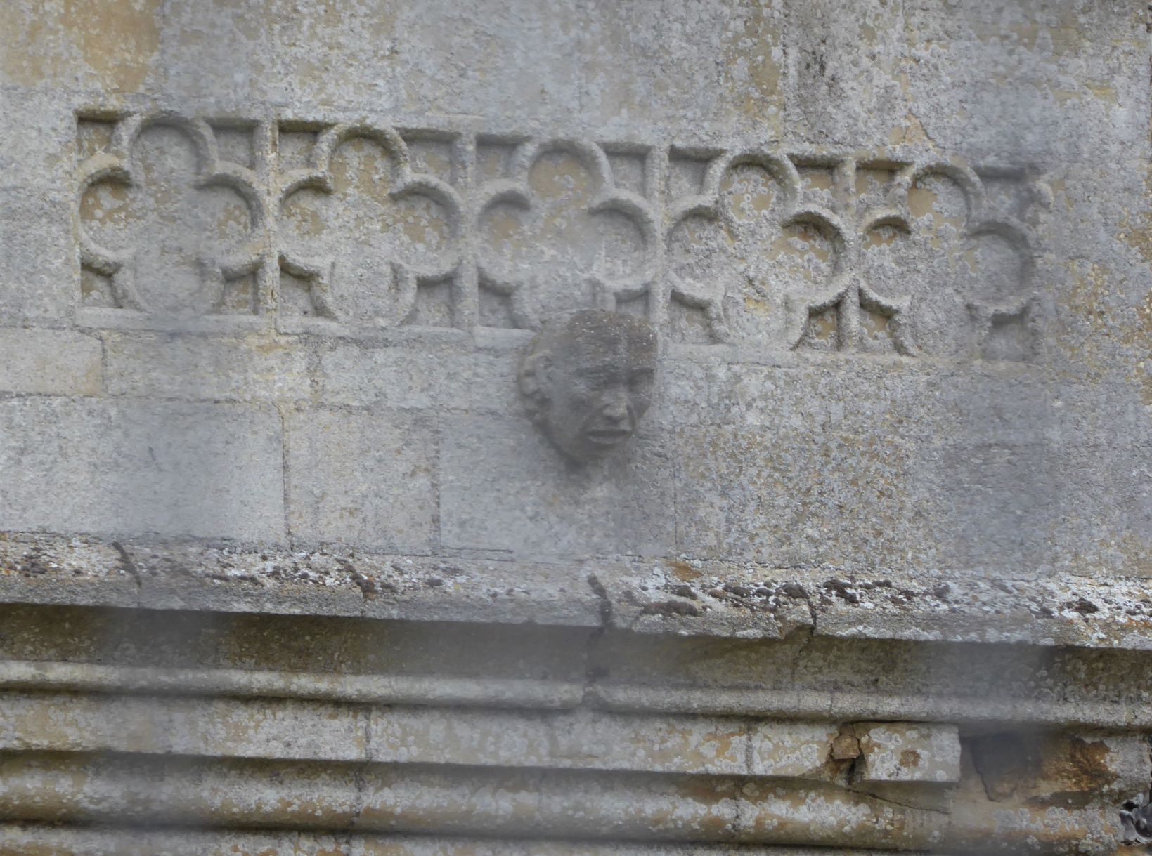 - face carved on pulpit