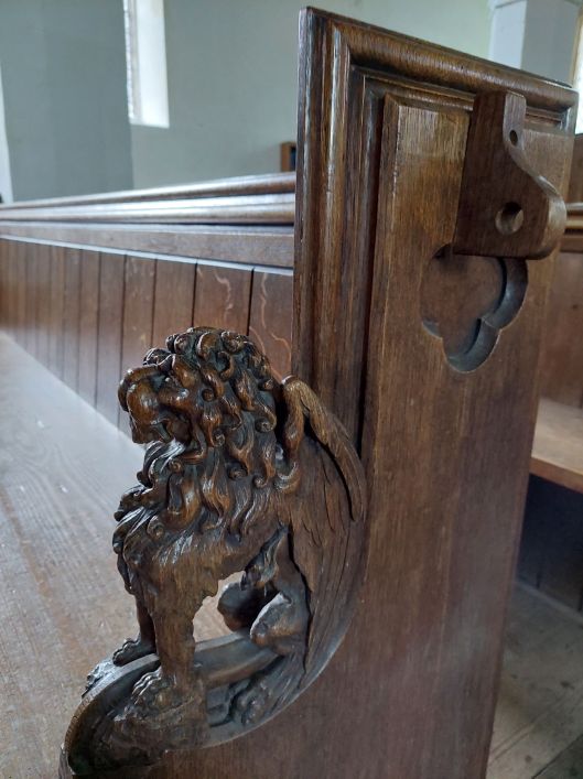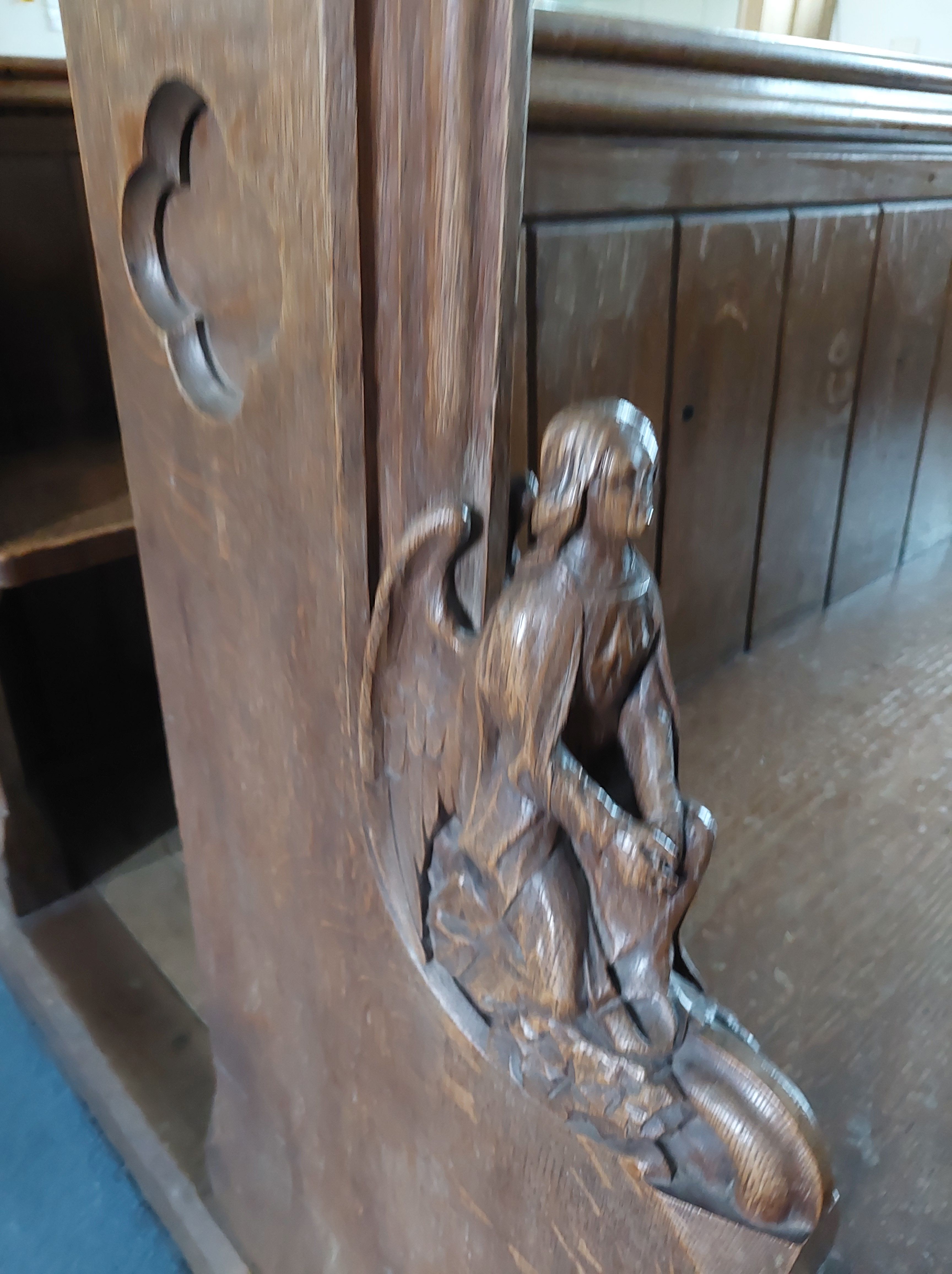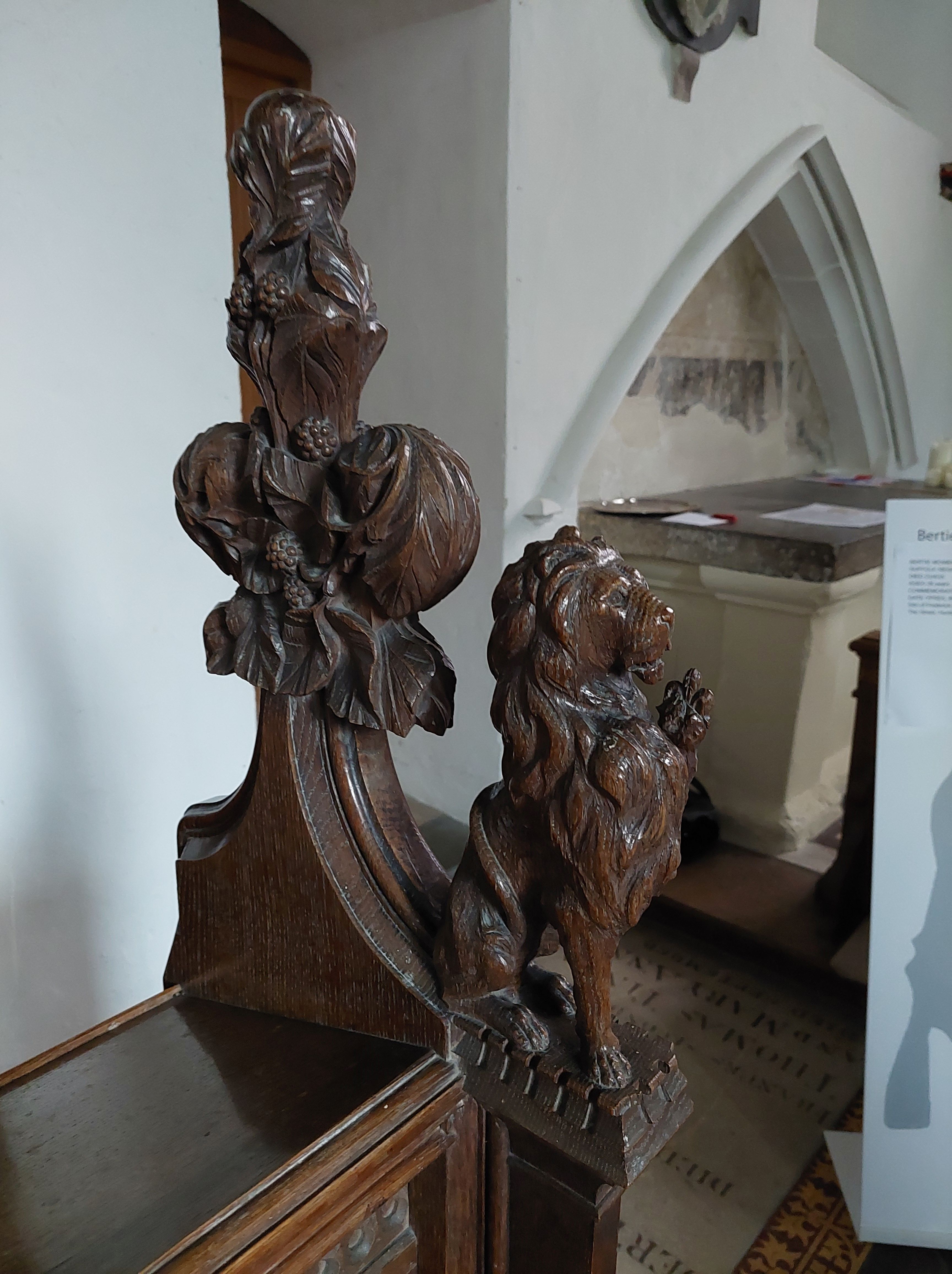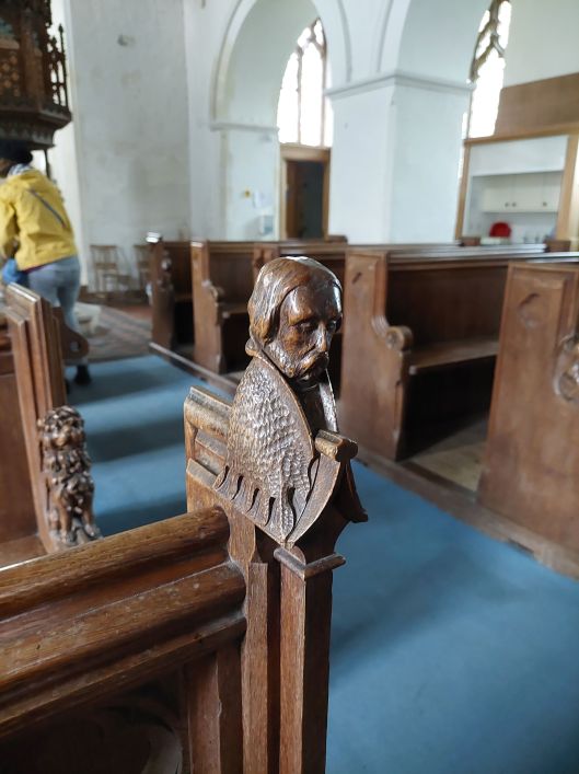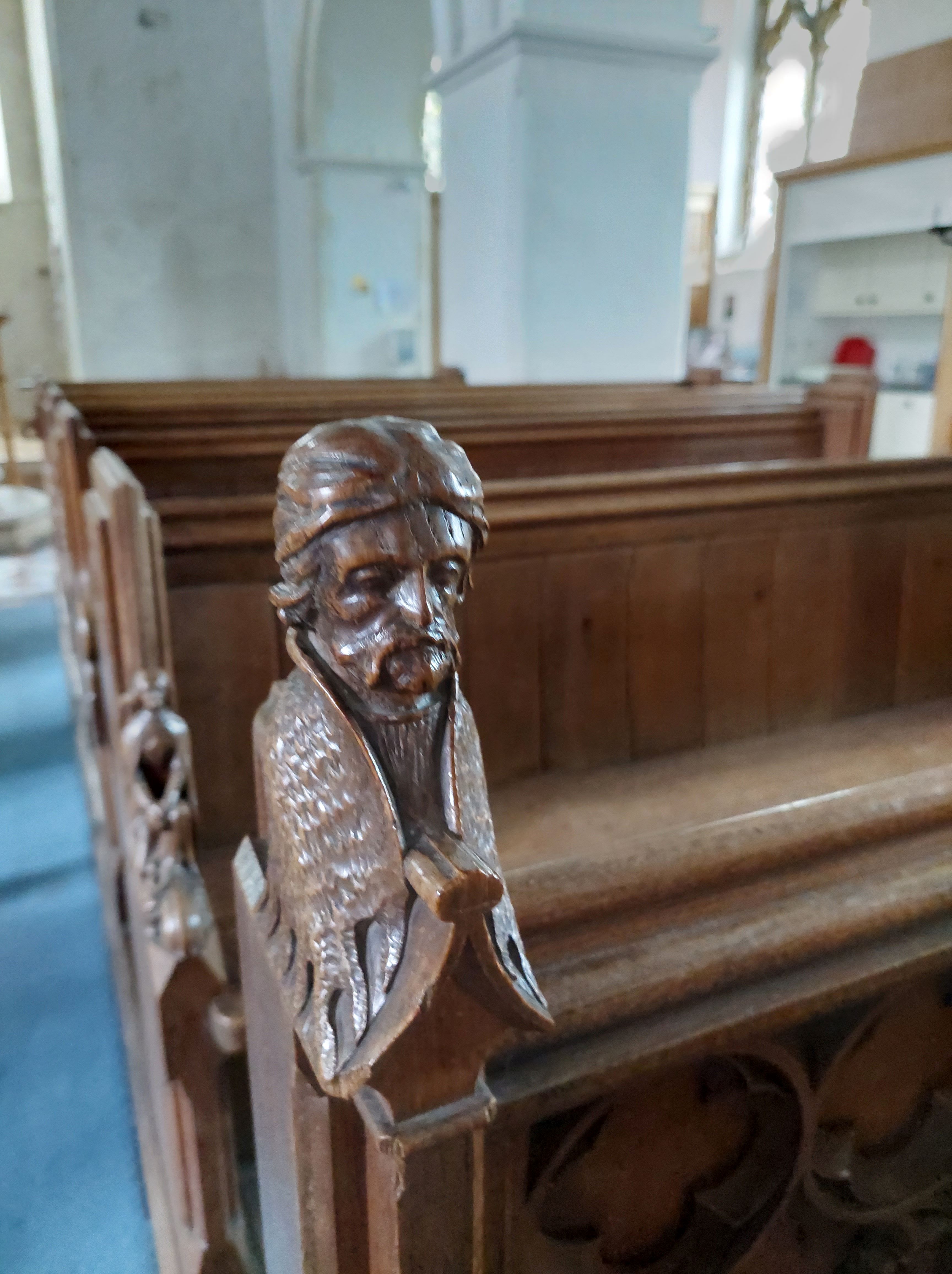 - Face carved on pulpit