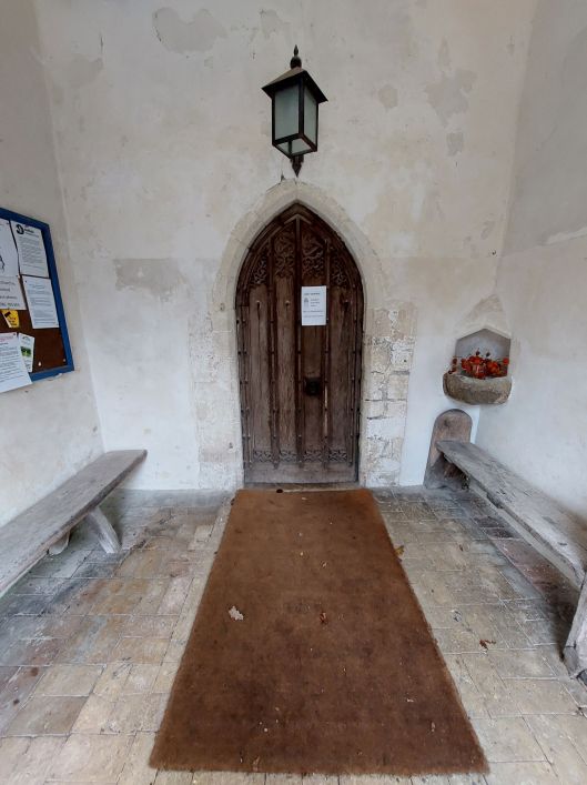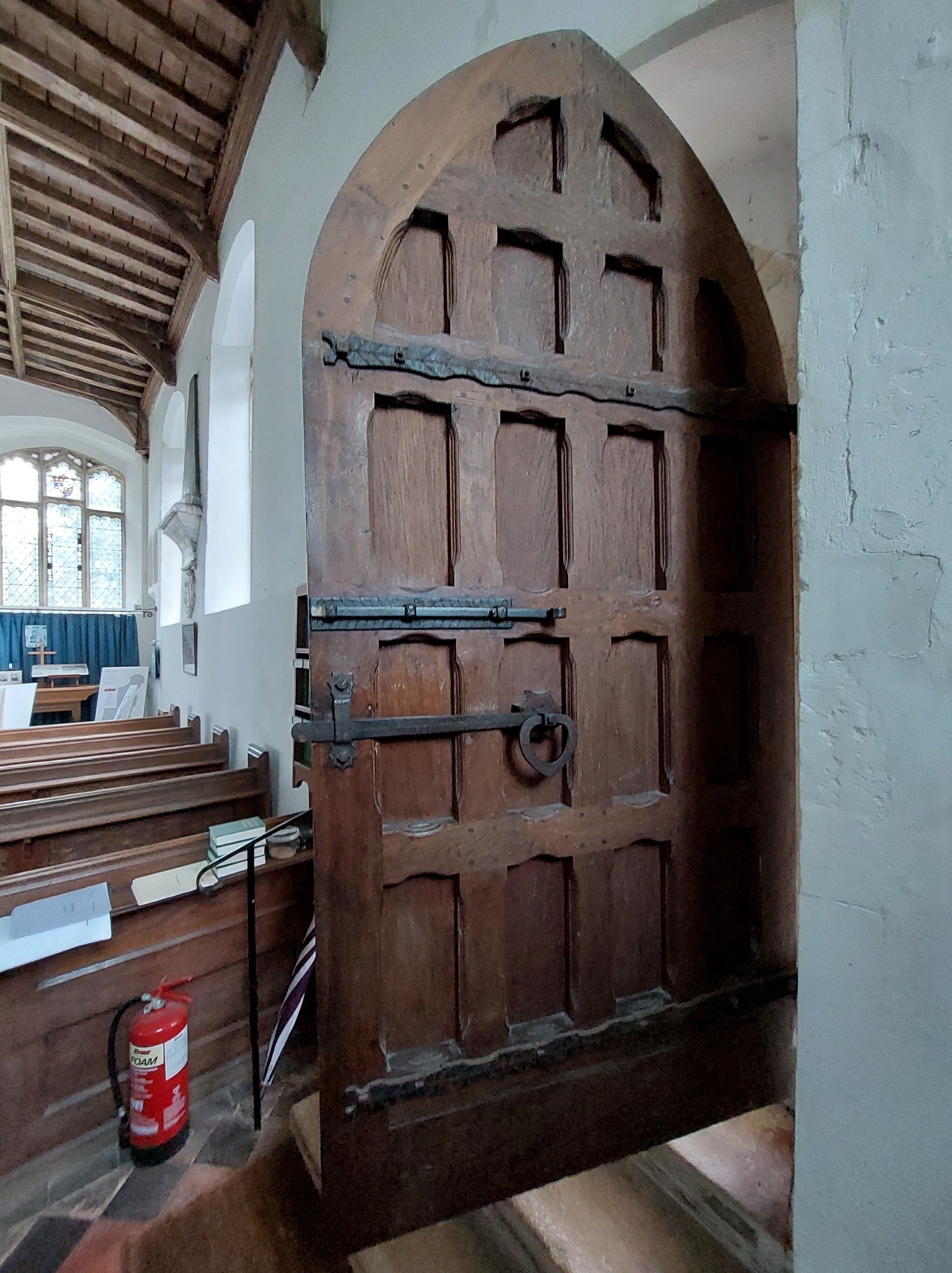 The outside of the South door, the main entrance to the church. The door retains the medieval sanctuary knocker.