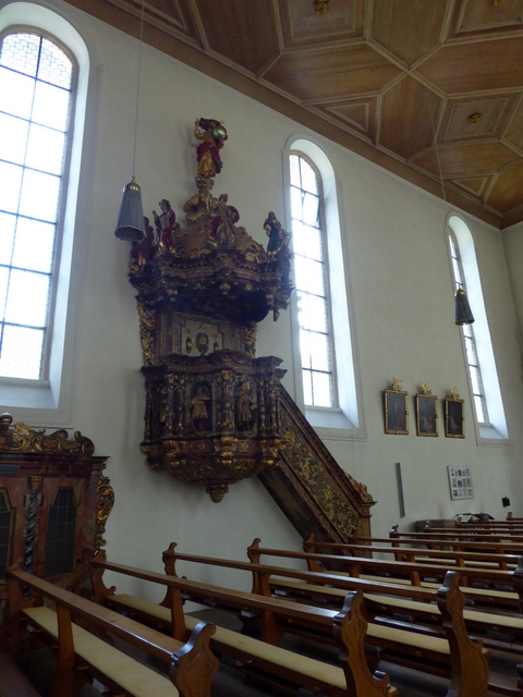 We eventually drove out onto St. Malo docks and then followed the ‘tout directions’ sign posts out of the town.  Somewhere near Dinan Richard stopped for more diesel and we then continued past Lamballe, St. Brieuc, Quintin, Corlay and Rostrenen.  By 10.30 we had arrived at the small town of Glomel, all very hungry and needing a break.  We parked the car and were getting Elinor out and into her pushchair when we realised that a wedding was about to take place.  Cars arrived with little pale blue net bows tied to their aerials or windscreen wipers.  Guests were walking about in their best clothes and with blue ribbon corsages on their lapels.  We walked up through the town to a café where we ordered drinks; orange juice for Alice and coffees for Richard and me.  Elinor had her own drink with her.  We heard car horns hooting and looked down the road to see the bride arriving in an old Citroën.  We heard bagpipe and reed pipe music playing as she was led into a building for the civil ceremony.  Richard went off to a boulangerie and bought pains aux raisins and pains aux chocolat which we were able to eat outside the café (which wasn’t serving food at that moment).  We were sitting opposite the church and we saw more guests beginning to arrive.  A large 4×4 Mitsubishi pulled up with two besom broomsticks tied to the back and a grotesque blow-up woman sitting in a pushchair tied to the roof.   When the civil ceremony finished the bride, groom and wedding party were led up the main street in a procession to the church by two men, one playing a talabard (the reedpipe) and the other playing the bagpipes (a binioù).  We left after they had entered the church at 11.00.  (I wish that one of us had taken a photo or two but our cameras were packed away in the car and those of you who have had children know how preoccupied with them one can be especially when they are away from home).  As we drove out Richard pointed out the large stand for photographs which had been erected outside the church.