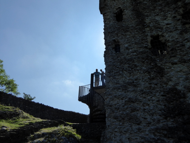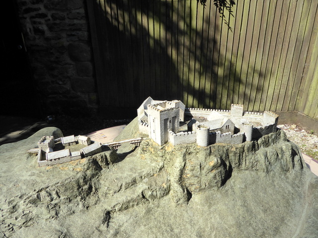 We then drove to Kernascléden via le Croisty and St-Caradec-Trégomel.  We looked at the church which has medieval paintings in it and then went to the toy museum.  (I looked on-line to see if the toy museum is still going and unfortunately I don’t believe it is.  There are some images of the museum but I think they are old pictures.)  We bought some postcards and groceries from a shop before driving off to the Scorff valley with its beautiful scenery.  We stopped at a likely place by the R. Scorff and Richard and Alice got out of the car.  A kingfisher flew past and they saw lots of pond skaters (insects) in the calmer parts of the river.  Next, we drove to Plouay where I used a public toilet (most unpleasant!) and then travelled on to Les Roches du Diable and looked at the wonderful rock formations on the R. Ellé.The rocks are supposed to have been thrown by the devil at Saint Winwaloe who had set up home by the river but the saint outwitted and defeated the devil.  The rocks show the devil’s claw marks on them.