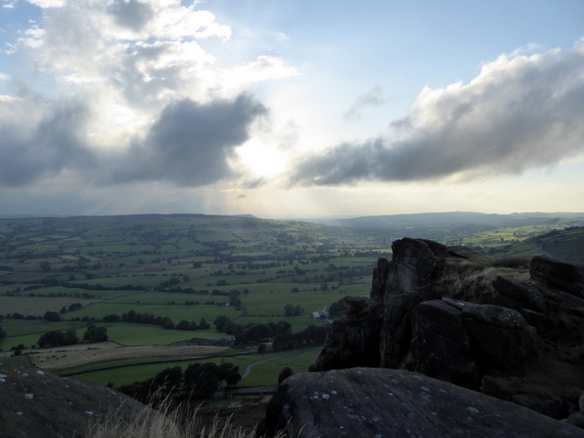 The next day was our last full day in the Peak District.  It began with rain but by lunchtime the weather was beginning to brighten up.  We went into Leek and indulged in some more oatcakes and on our return to the caravan we were pleased to see that the awning was dry and so we emptied it and took it down while we could.   We drove to Ramshaw Rocks and took our last walk in the Peaks this year.