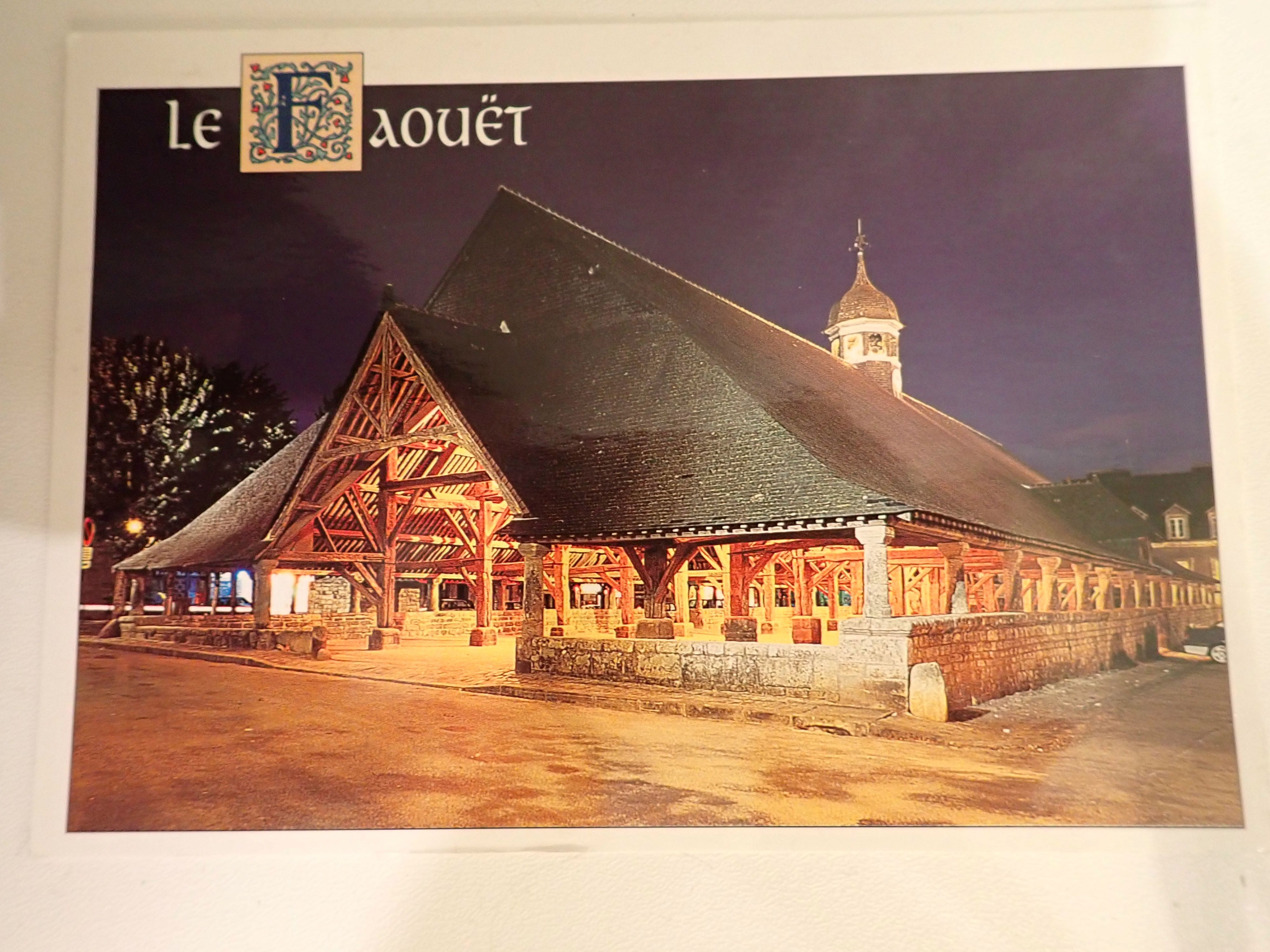 We arrived in Le Fauoët about half an hour later and parked in the main square.  The large 16th century Halle had a market in it but we didn’t go in. We went to a café and had more drinks and then walked round the town and looked for somewhere to eat.  However, everywhere was very full so we decided we’d go to the supermarket and buy everything we’d need for the next few days and go on to Lanvénégen where we would be staying and try to eat at the café there.  We called in at the tourist office and got a lot of local information and the directions out of the town to Lanvénégen.