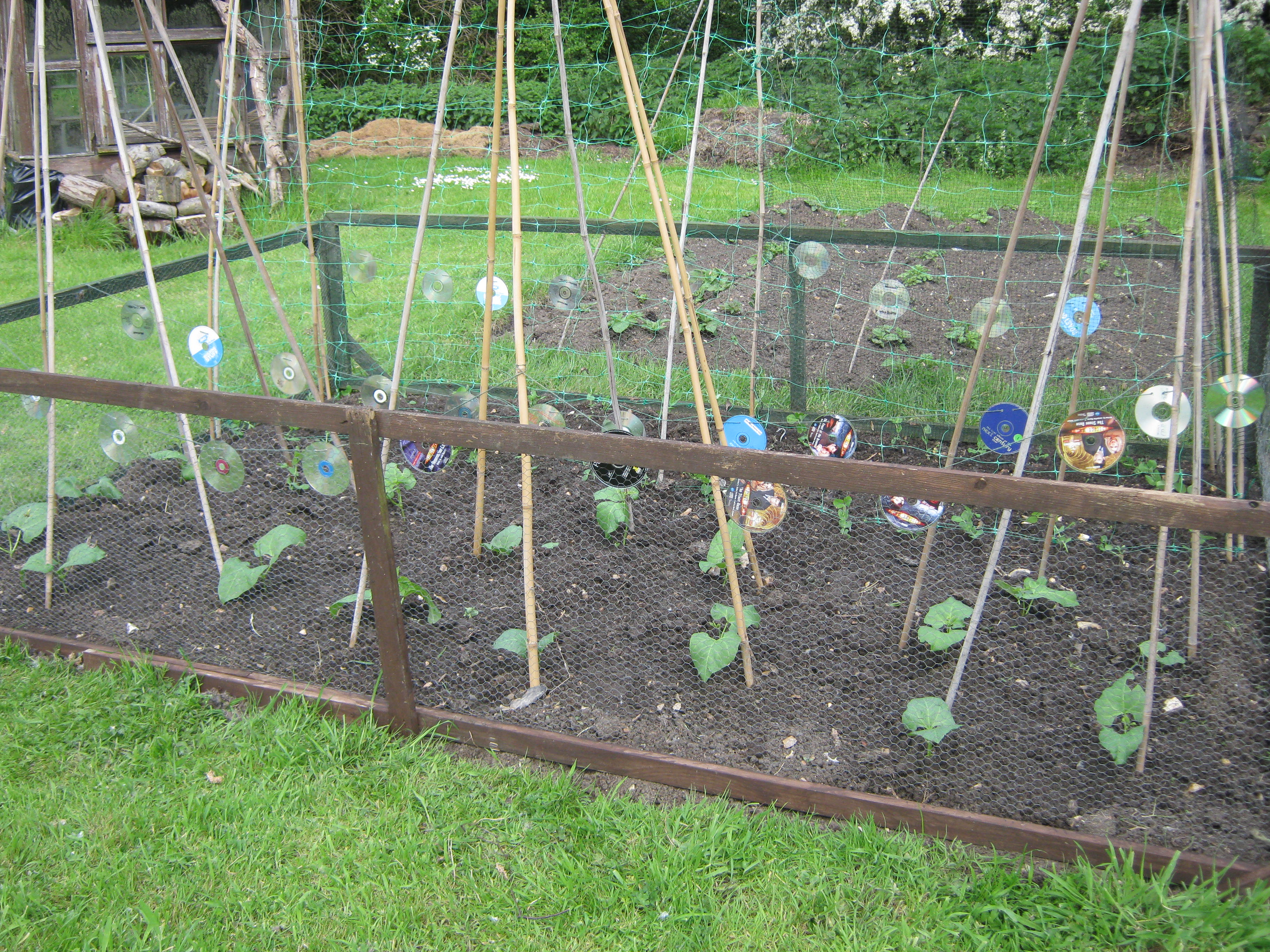This is a very narrow bed alongside the rear of the garage next to the back door. All the flowers are blue and two of the plants have variegated yellow and green leaves. However, just to prove that nothing goes exactly to plan, the bed also contains a red-berried Firethorn ( Pyracantha) which has creamy white flowers; this plant was here when we moved here and the birds and bees love it.