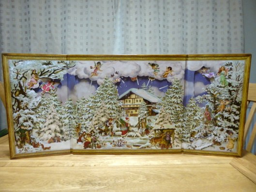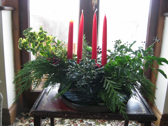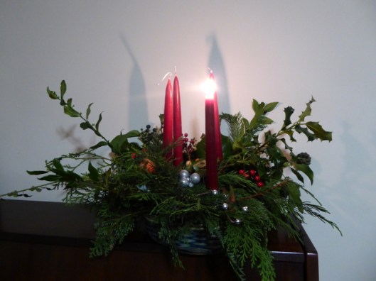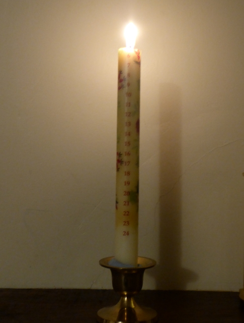 Last year we held an Advent service in church which I enjoyed very much. No carols but Advent hymns, solemn and beautiful. This year we will have a Carol service on the 20th and we will go to Midnight Mass on Christmas Eve as usual. We have an Advent Crown or Wreath at church and as each Sunday passes we light one more candle until on Christmas Eve all four are lit.