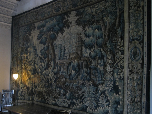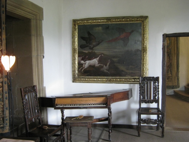 These topiary yew trees are clipped into the shapes of a boar’s head and a peacock, the arms of the Vernon and Manners families to whom the Hall still belongs.  The Hall passed to the Manners family in the 16th century as the heir to the estate, Dorothy Vernon, had married Sir John Manners.  There is a story that Dorothy and John eloped in 1563 which may be true but Sir John Manners came of a rich and noble local family and I cannot think that Dorothy’s father would have objected to him.