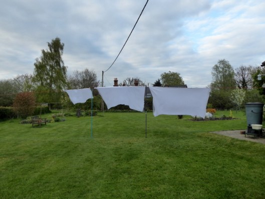 Before going out again that evening I managed to wash two altar cloths and a table cloth from the church. They dried quickly in the strong, cold breeze that has been blowing all the week.