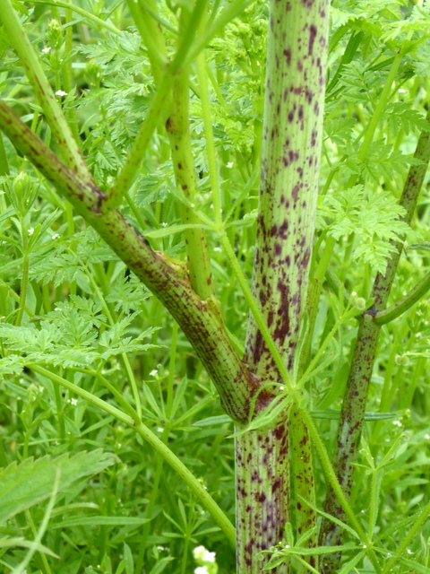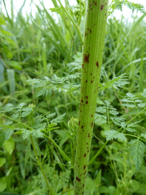 It might also be Hemlock! (Conium maculatum) They are both described as hairless biennials with purple-blotched stems.  Hemlock’s stems are hollow and purple-blotched and Milk-parsley has ridged stems that are often blotched purple!