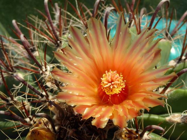 Flower on Richard’s Fish-hook Cactus (Ferocactus wislizeni)