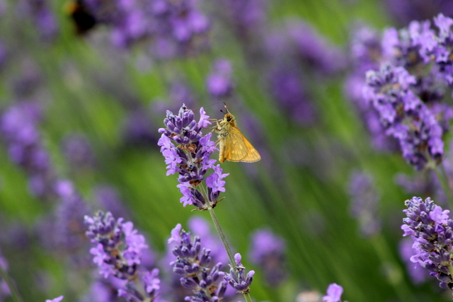 Large Skipper butterfly (Ochlodes sylvanus) on Lavender – Lavandula angustifolia ‘Hidcote’.