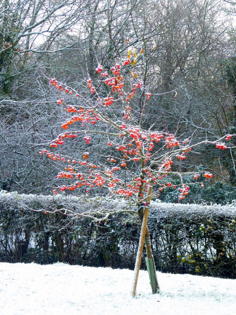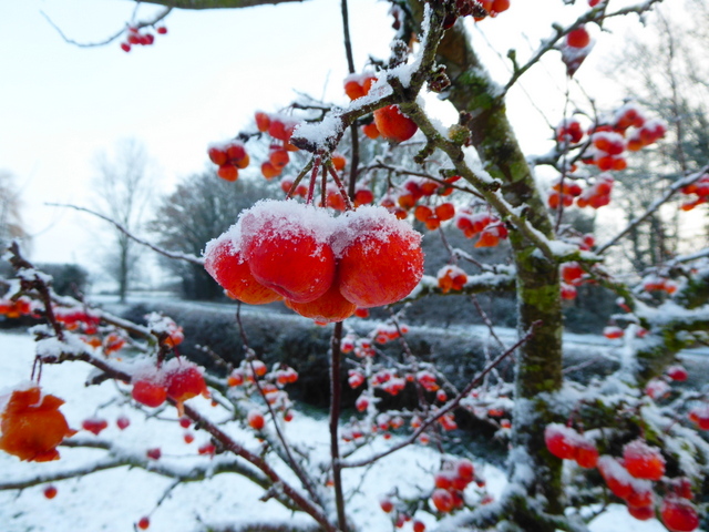 The crabapples on our species crabapple tree look like cherries. Woodpigeons are very fond of them.