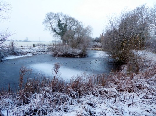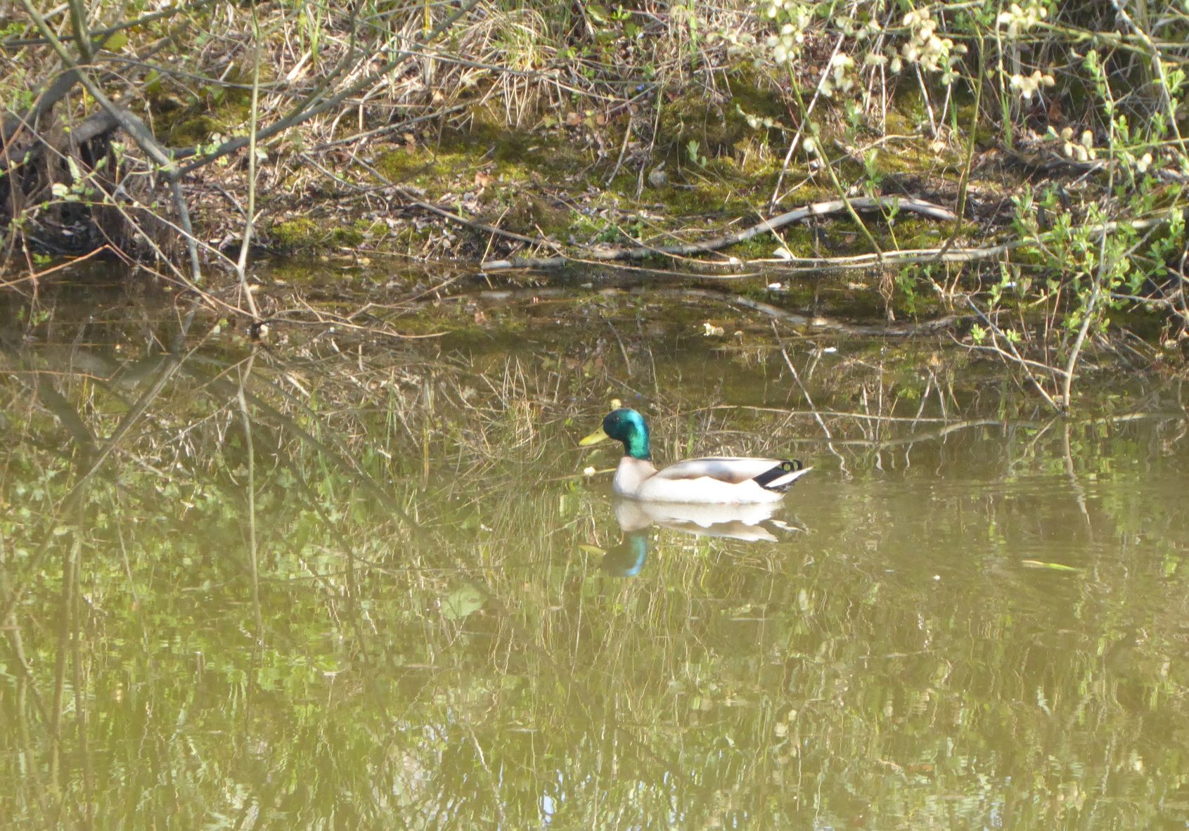 Our large pond in March. The water-level is very low due to insufficient rainfall for a year.