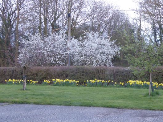 A week or two on from when the photo of the leveret was taken and the daffodils are all coming out.