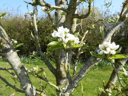 Pear blossom. We recently pruned and topped our pear tree as it was getting enormous. We should still get quite a lot of fruit this year, if all goes well.