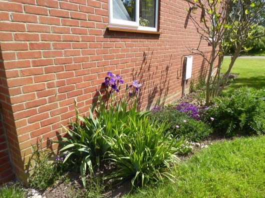 I might move this iris away from the purple and blue ones in the autumn. It is an interesting colour but is a little overwhelmed by its neighbours.