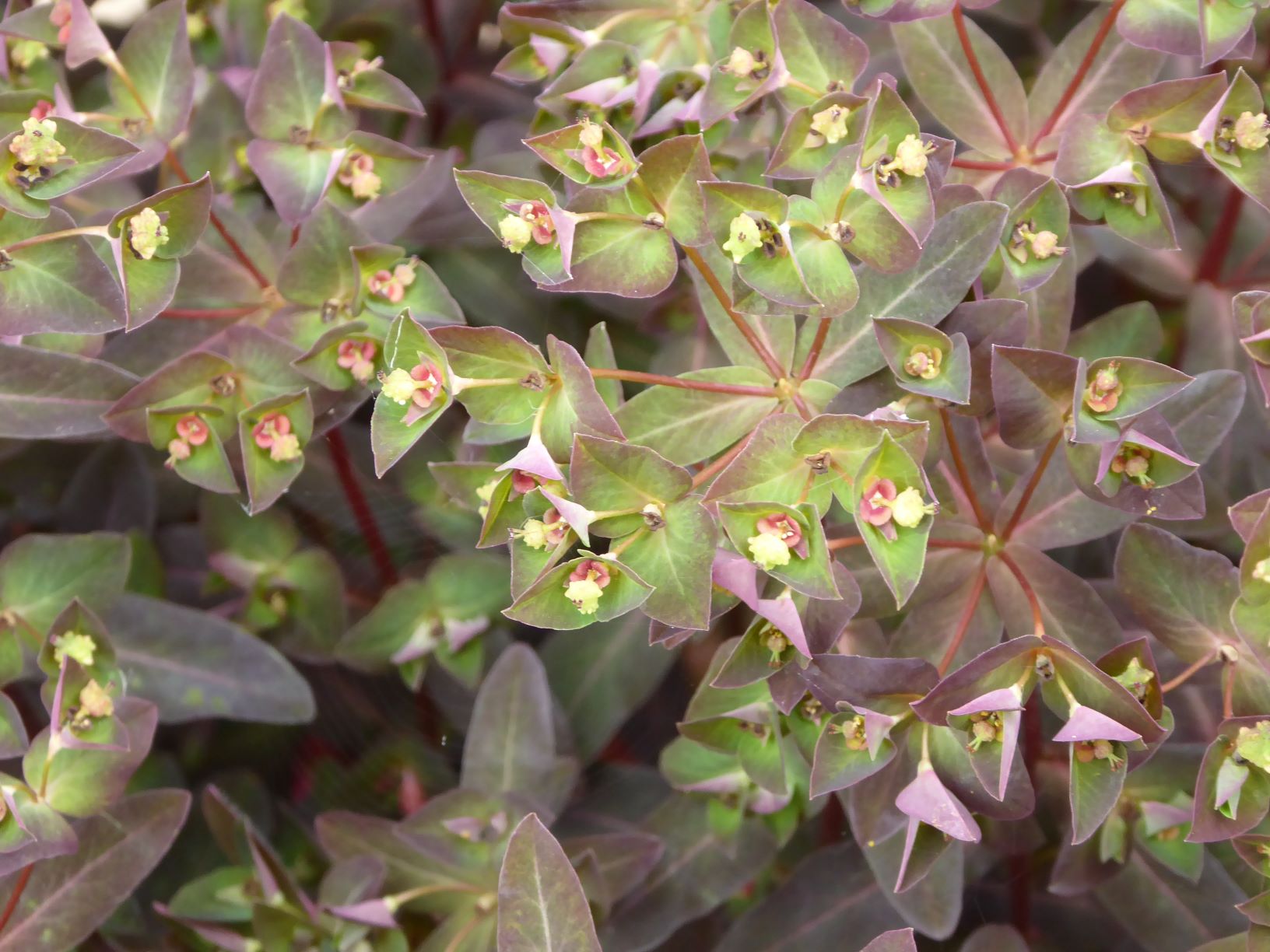 Euphorbia. This is a small perennial sub-shrub with interesting colours in its leaves and bracts.