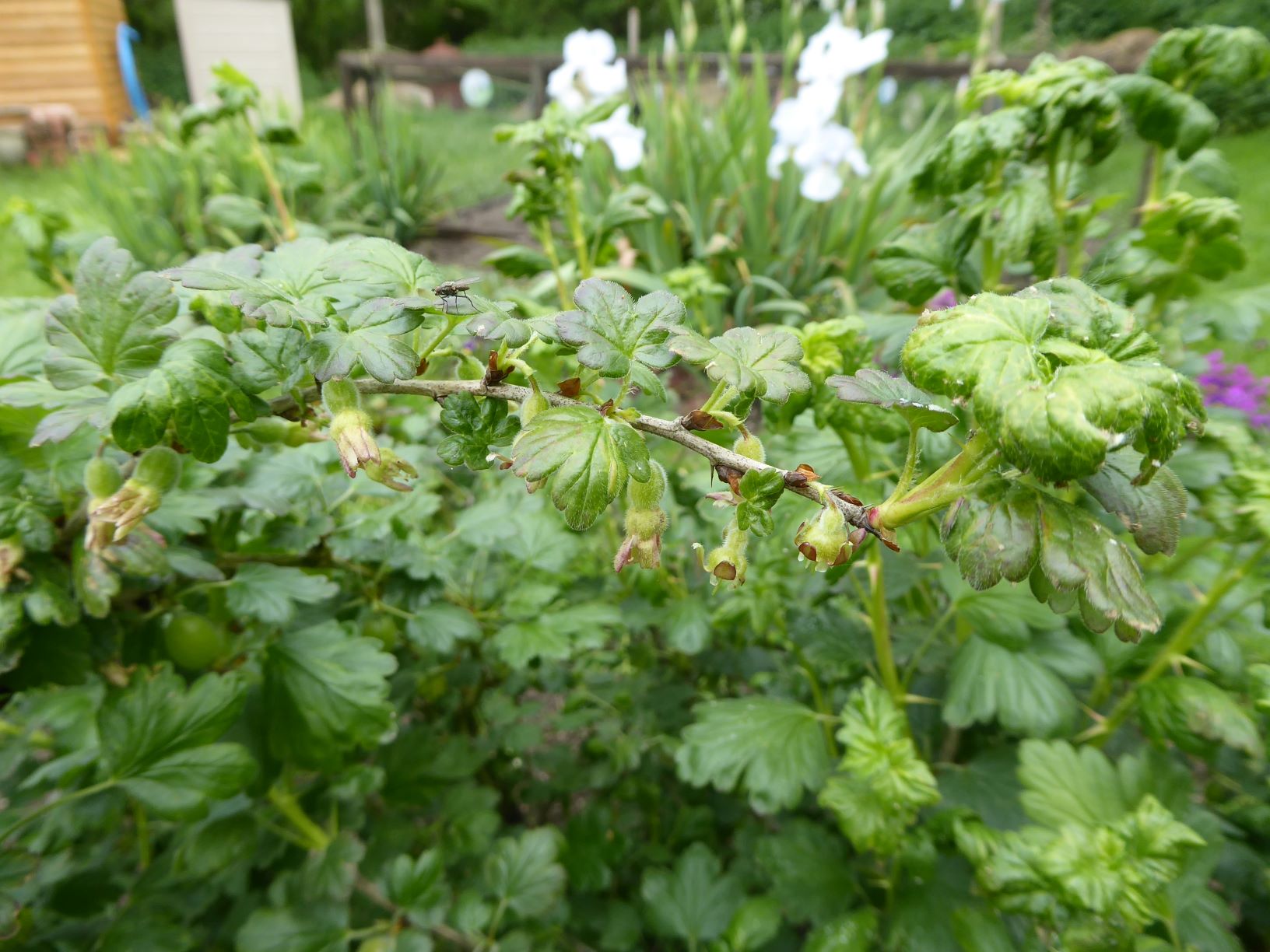 Gooseberry. If you look carefully you will see many tiny gooseberries. Unfortunately we didn’t protect the bush from the birds and we got no berries at all. One day they were all there and the next they weren’t. We have never needed to cover the bush before.