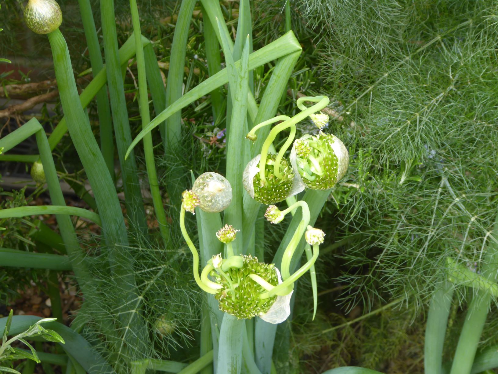 The welsh onion in the herb garden went crazy this year!
