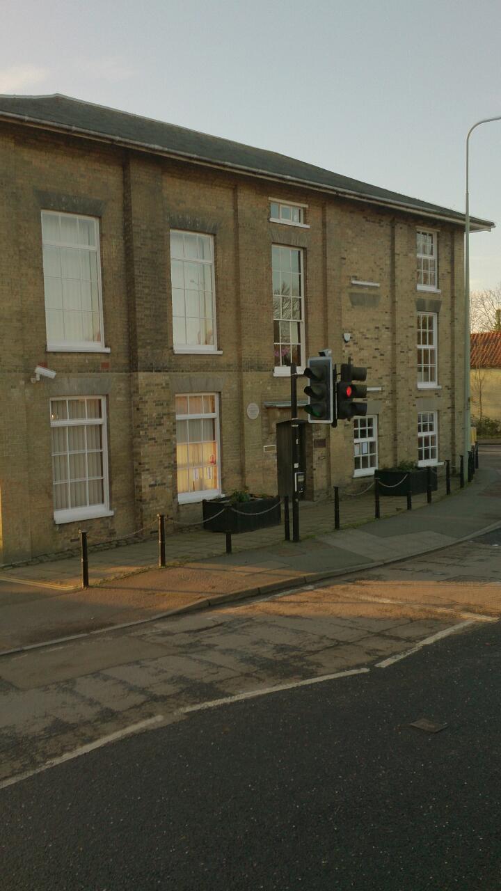 Our very first walk was on an extremely cold and gloomy day at the beginning of April. We drove to Halesworth, one of our local towns and parked in the central town car-park. It was so gloomy and cold that I took hardly any photos and most of those didn’t come out at all well. We entered the Thoroughfare from the car-park and turned left towards the church and the Market Place.