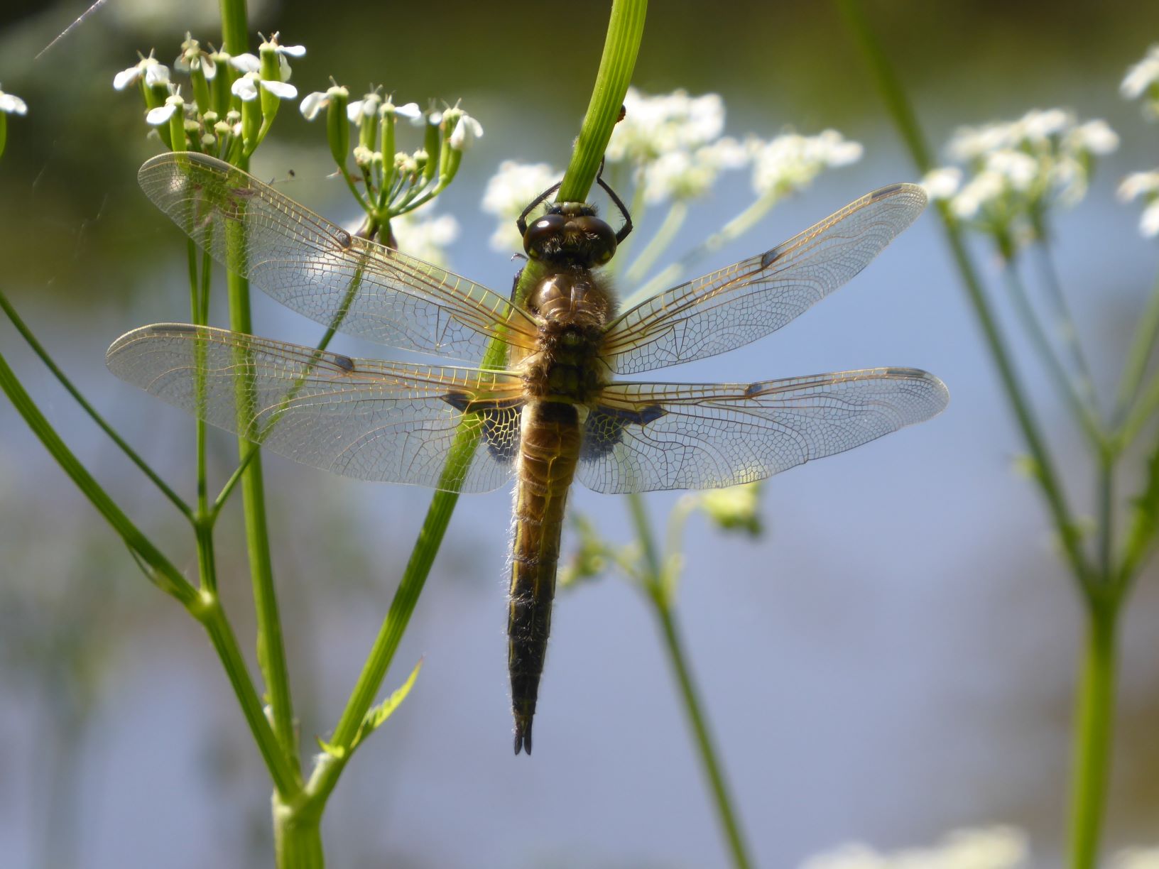 These amber and black-coloured dragonflies fly during late spring and early summer and fortunately for me and my camera, they take regular rests on plants round the edge of the pond from where they watch for prey and/or mates. Males are very territorial and aggressive.