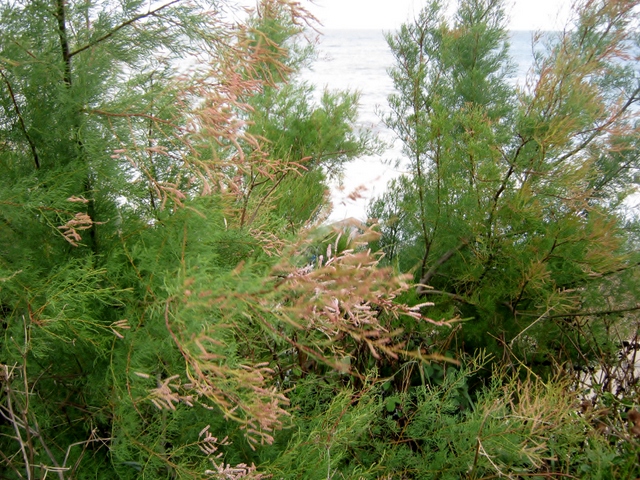 We have a couple of spindly Damson or Bullace (Prunus domestica ssp. insititia ) trees growing in the scrubby area near our pond. This is a photo of the blossom and new leaves.