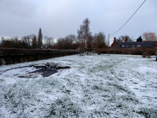 I looked down the garden. The small pond was completely frozen.