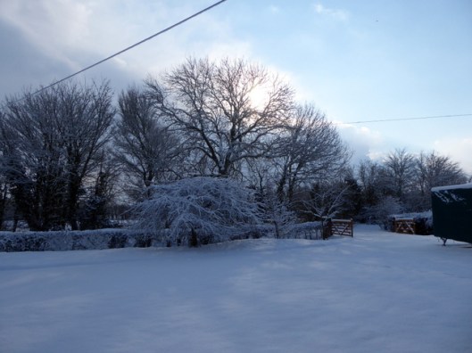 We have stayed at home while the winds have picked up and blown most of the snow from the trees and caused deep drifts everywhere.  The roads to the other villages and our local towns are all blocked.  The depth of the snow in the garden has reduced, not from melting but by being scoured away.  We are hoping that we will be able to get to town later this morning before the next snow arrives.  We need to buy supplies and collect medication for me and for Mum.  Our gas delivery hasn’t arrived and we have nearly run out.  I don’t fancy a few days without central heating!  We have turned the thermostat down and the water heater off to conserve power.