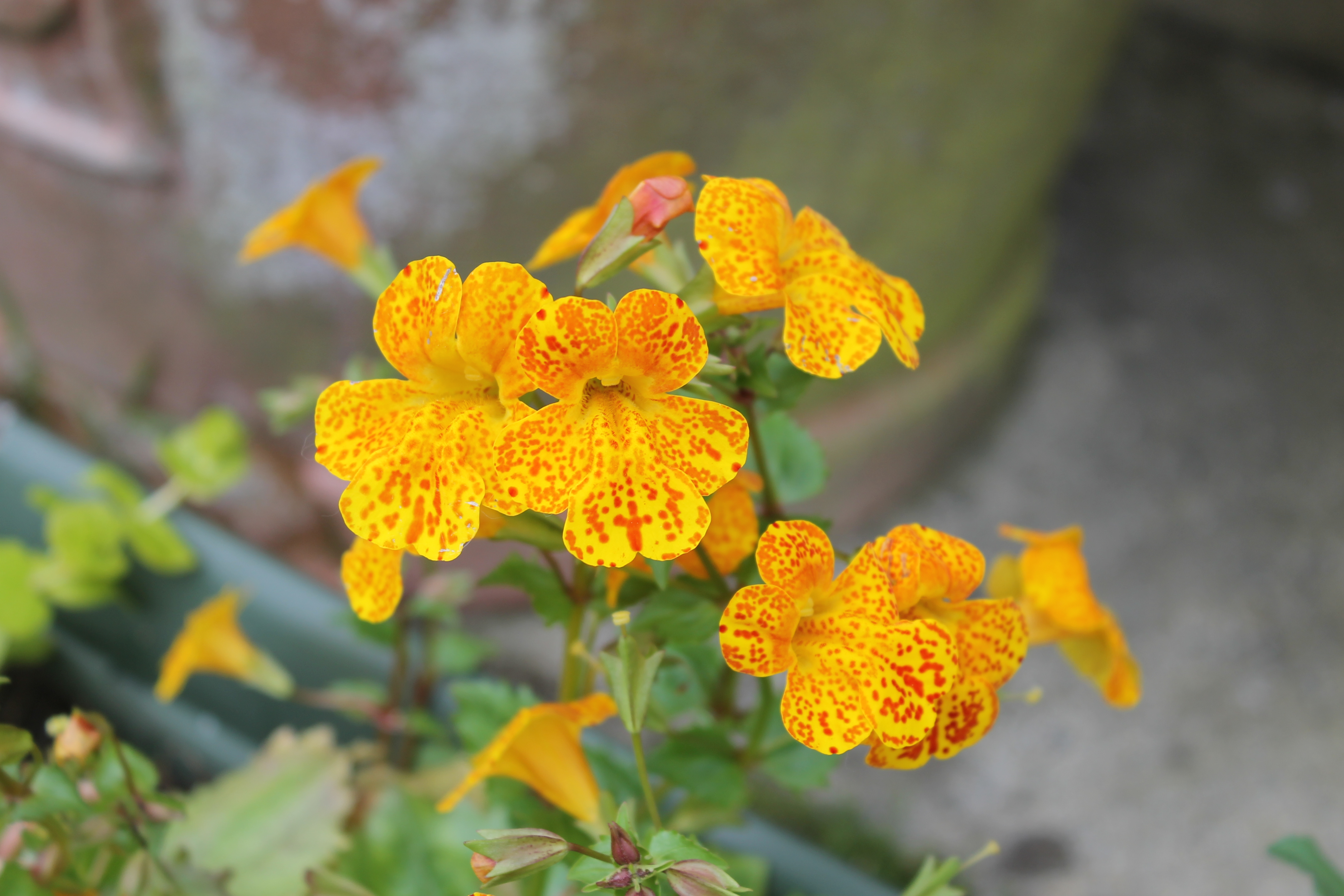 I love these double flowers – the peach petals have dark crimson bases.