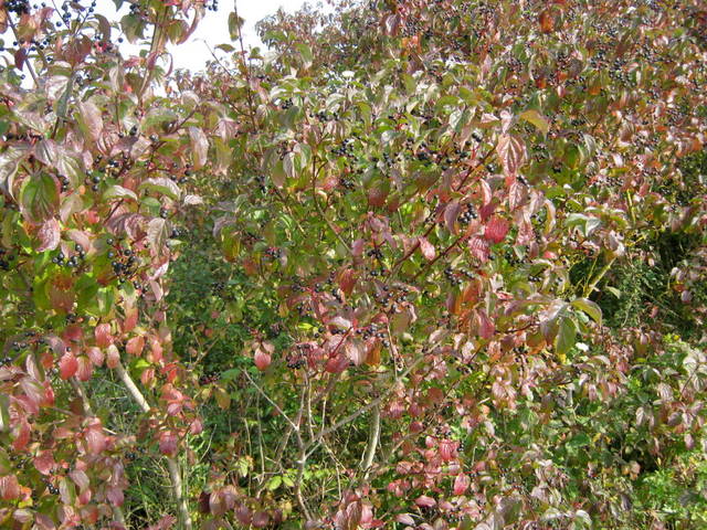 Close to where I photographed the Tansy I found this hedge of Dogwood. It was covered in large black berries – the largest I have ever seen on a Dogwood – and most of the leaves had turned a beautiful red. Dogwood leaves are usually a much darker, duller maroon in Autumn.