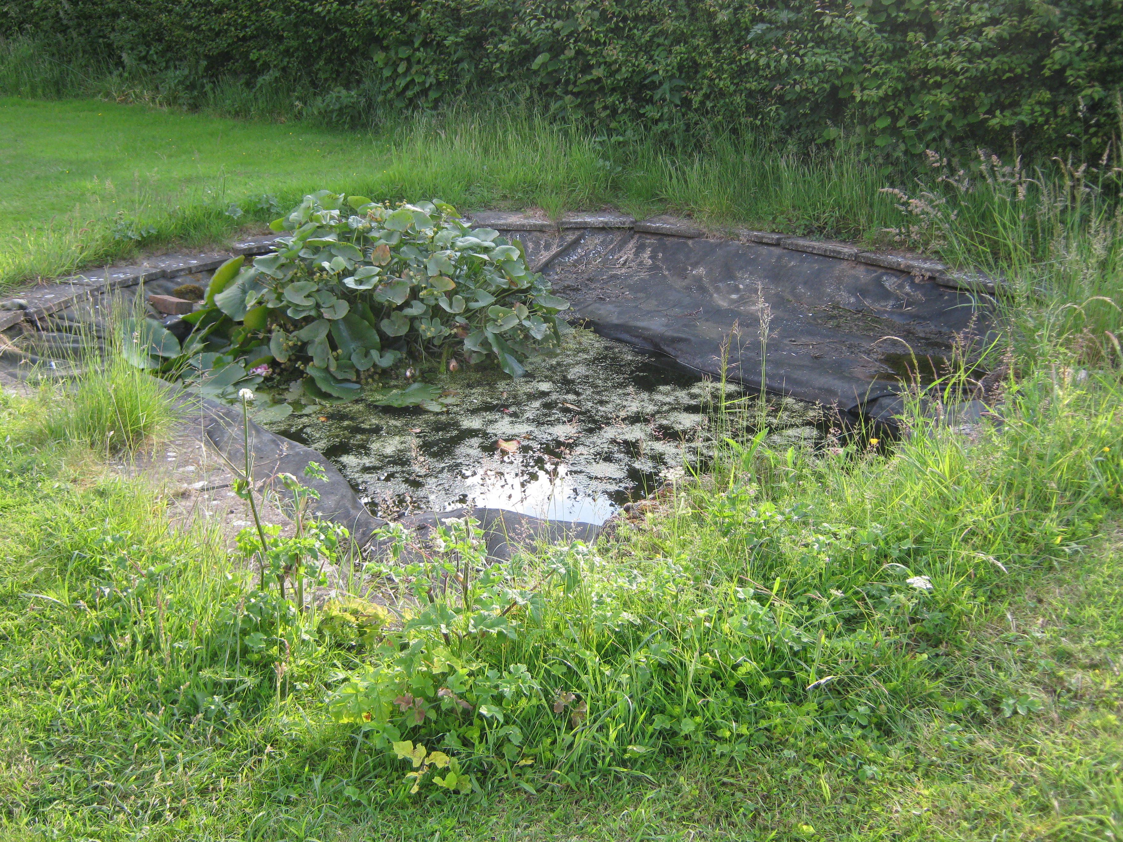 Our large pond in March.  The water-level is very low due to insufficient rainfall for a year.