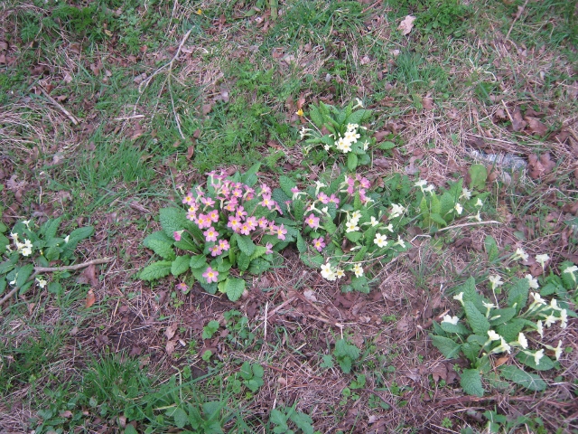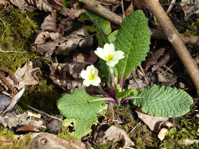 That same day I walked round the garden and then out onto the verge next to the lane beyond our hedge and found these primroses in flower. Garden primulas are able to flower at any time of the year as long as it isn’t too hot or too cold. Wild primroses, however, have their season and late March is the best time to see them round here.