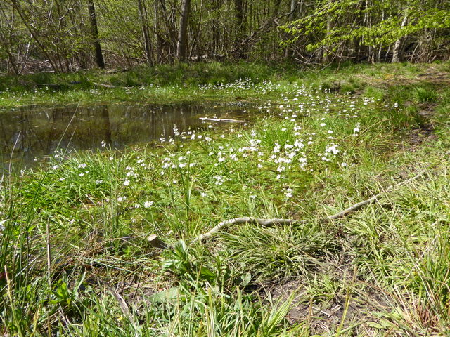 Our large pond in March. The water-level is very low due to insufficient rainfall for a year.