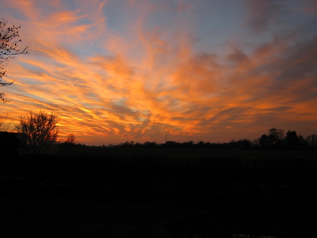 We had a fabulous sunset last night.  After yet another cloudy start to the morning things gradually improved so that by early afternoon it was bright and much warmer than of late, though still with a stiff northerly breeze.  I spent the whole day at home – a real luxury – household chores in the morning and a little gardening in the afternoon.  Because we haven’t had much rain recently I decided to water everything very thoroughly yesterday evening so went outside again after our evening meal.  I started off with lots of watering cans filled from our water-butts which I used in the greenhouse, on plants in tubs in ericaceous soil and on as many of the other plants and flower beds as I could manage.  I then used the hosepipe for the rest of the thirsty plants.  We have a water meter so are careful not to use the garden hose any more than we have to.  We save as much water as we can in water-butts but carrying lots of filled two-gallon cans round the garden is tiring work.
