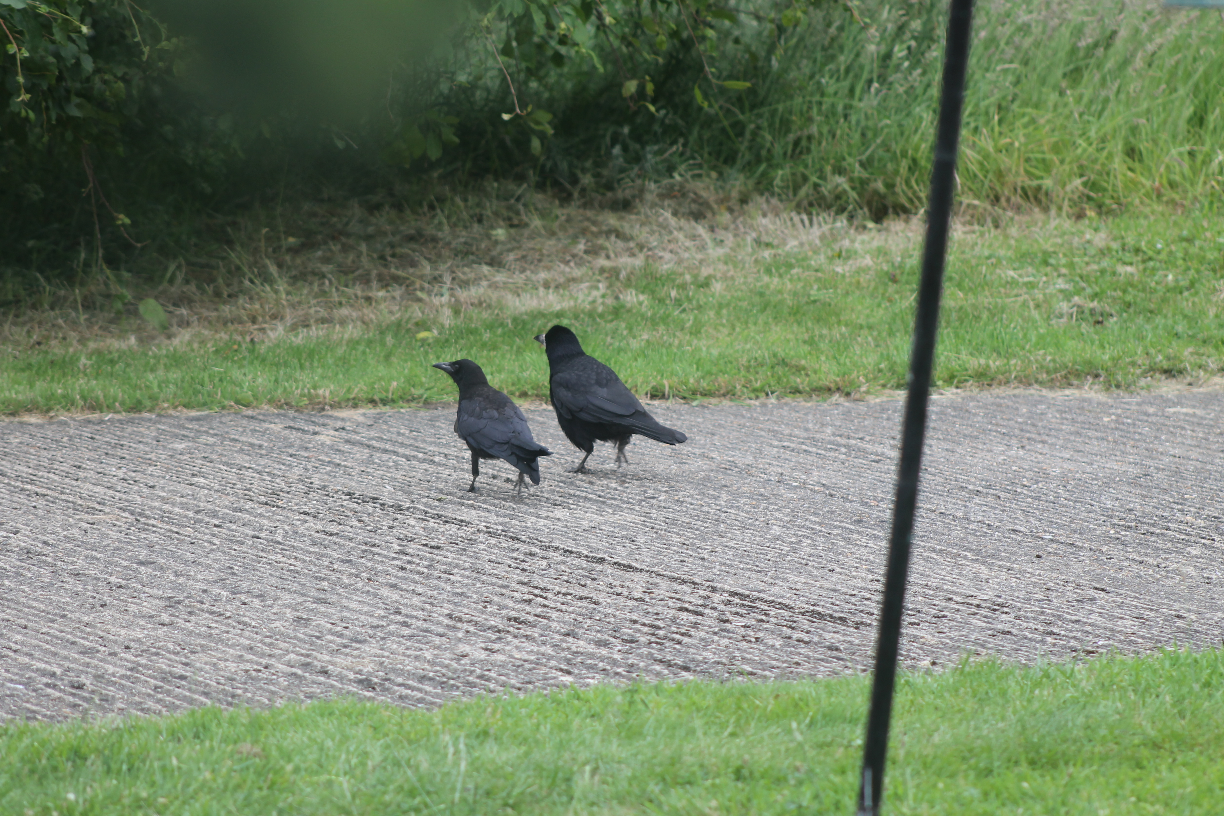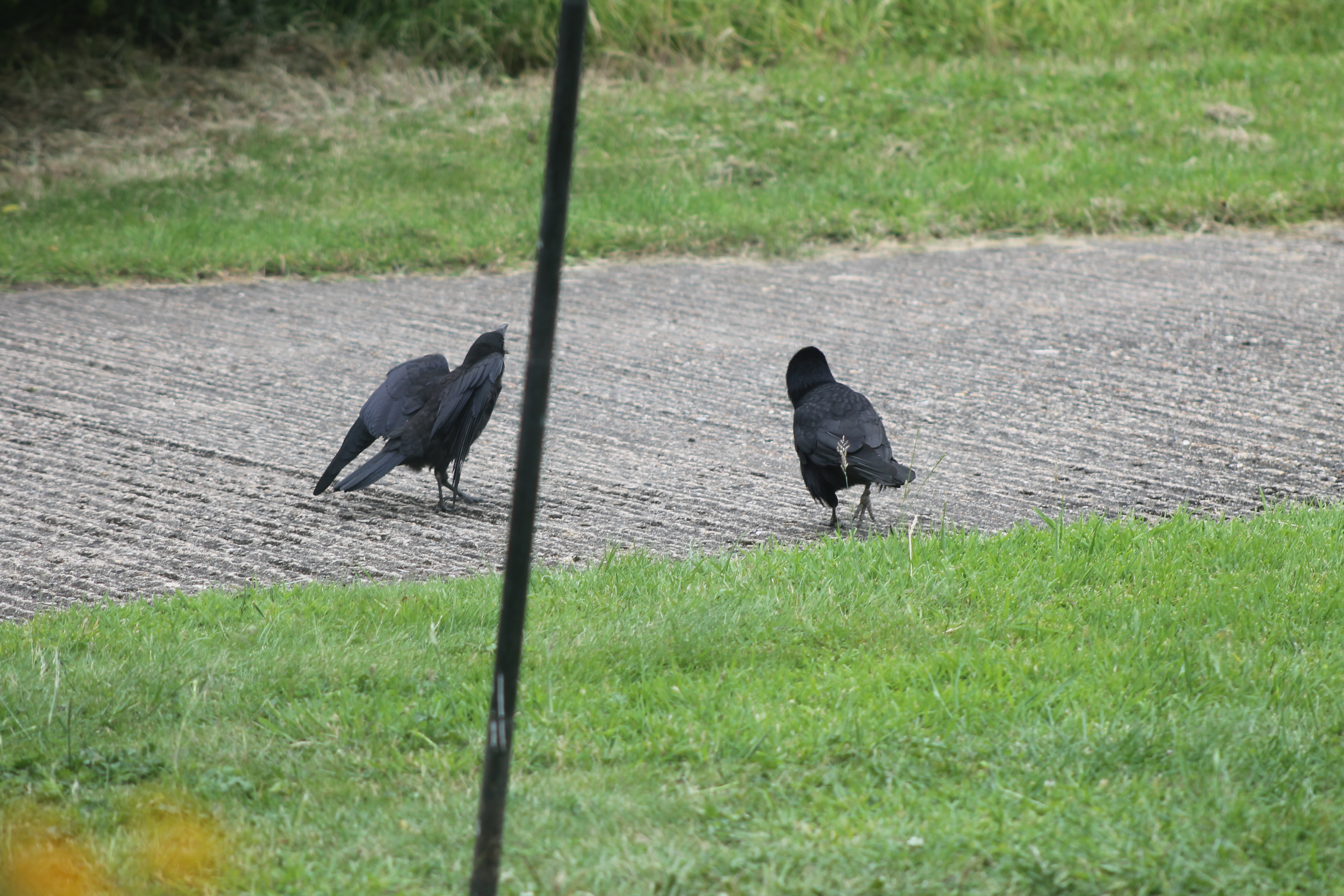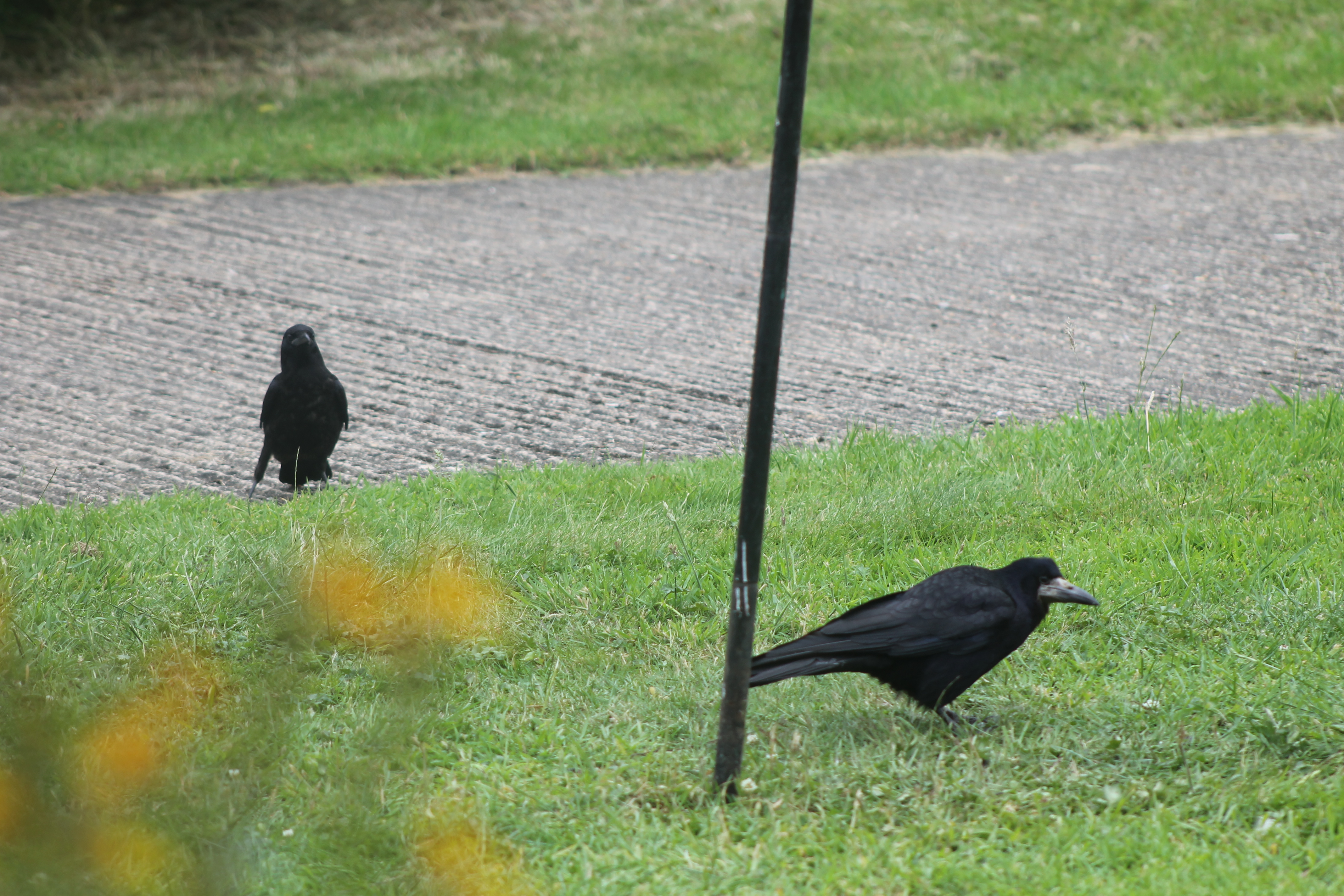 Off they go together to look for food under the tree.  Poor parent rook – all the other rooks’ fledglings have gone off a week or more ago and only this one is left, unable to feed itself.