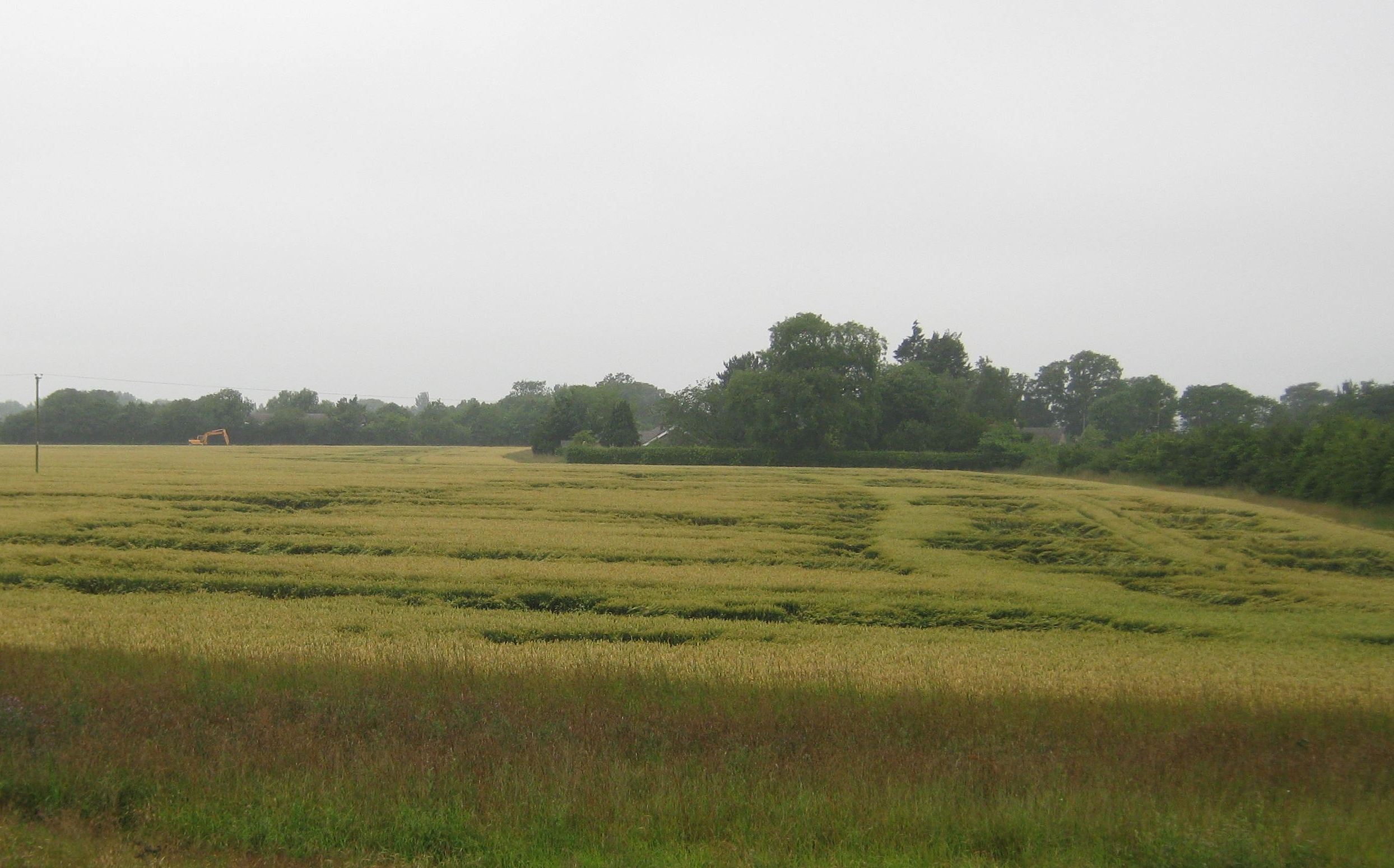 The wind and rain has done considerable damage to the fields of crops in the area. Please note the overwhelming grey sky!