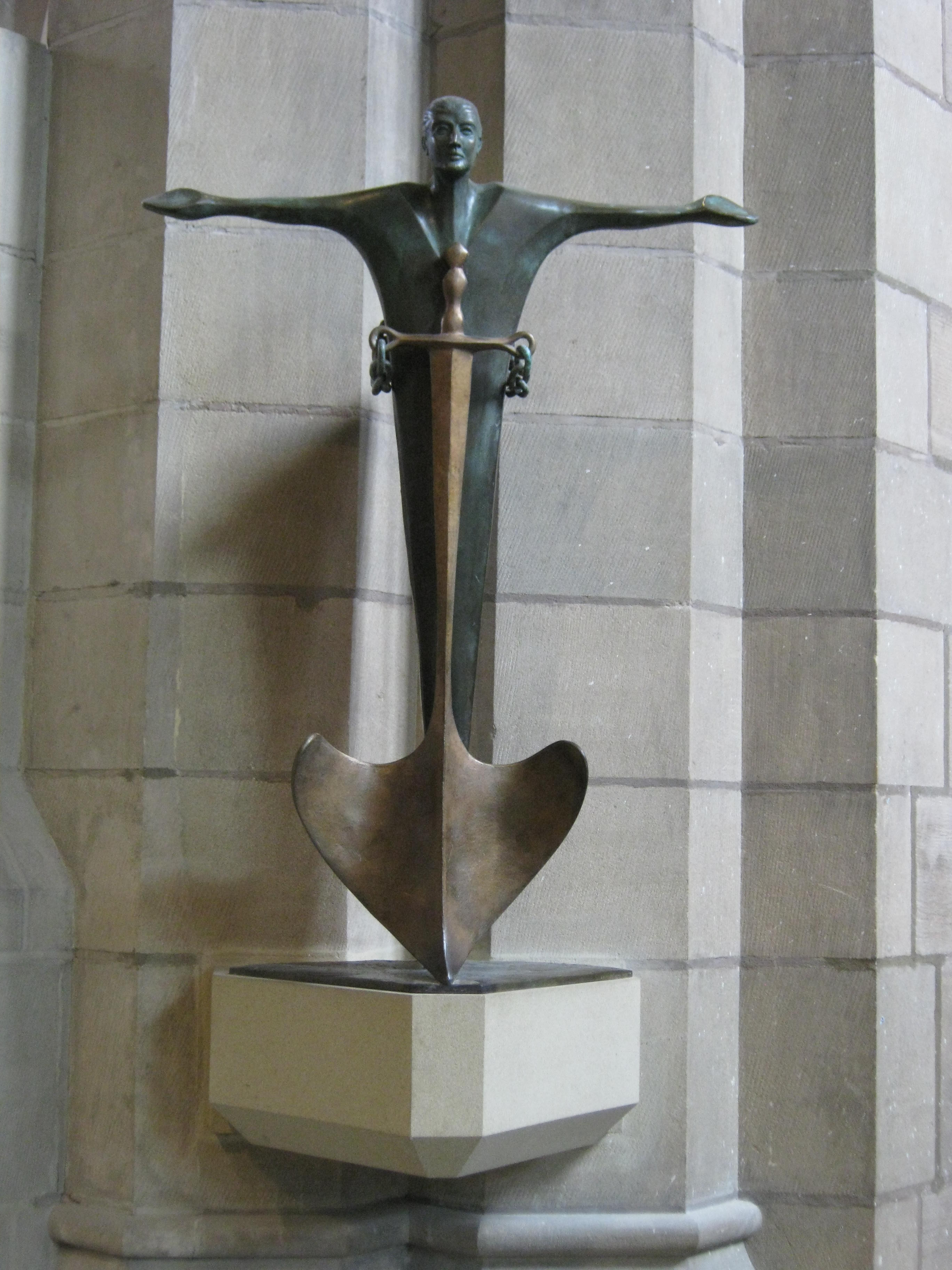 This lovely statue is a memorial to commemorate the special relationship between the city of Sheffield and ships of the Royal Navy bearing the city’s name. It was placed in the cathedral on 17th April 2000 by His Royal Highness the Duke of York CVO ADC. It is a tribute to all those who gave their lives in the service of their country. British people remember that HMS Sheffield, a 4,100 tonne destroyer with a crew of 300 on board was hit by an Argentinian Exocet missile on 4th May 1982. Twenty died and twenty-six suffered blast and burn injuries. It was the first ship to be lost in enemy action since the Second World War. Prince Andrew took part in the Falklands War.