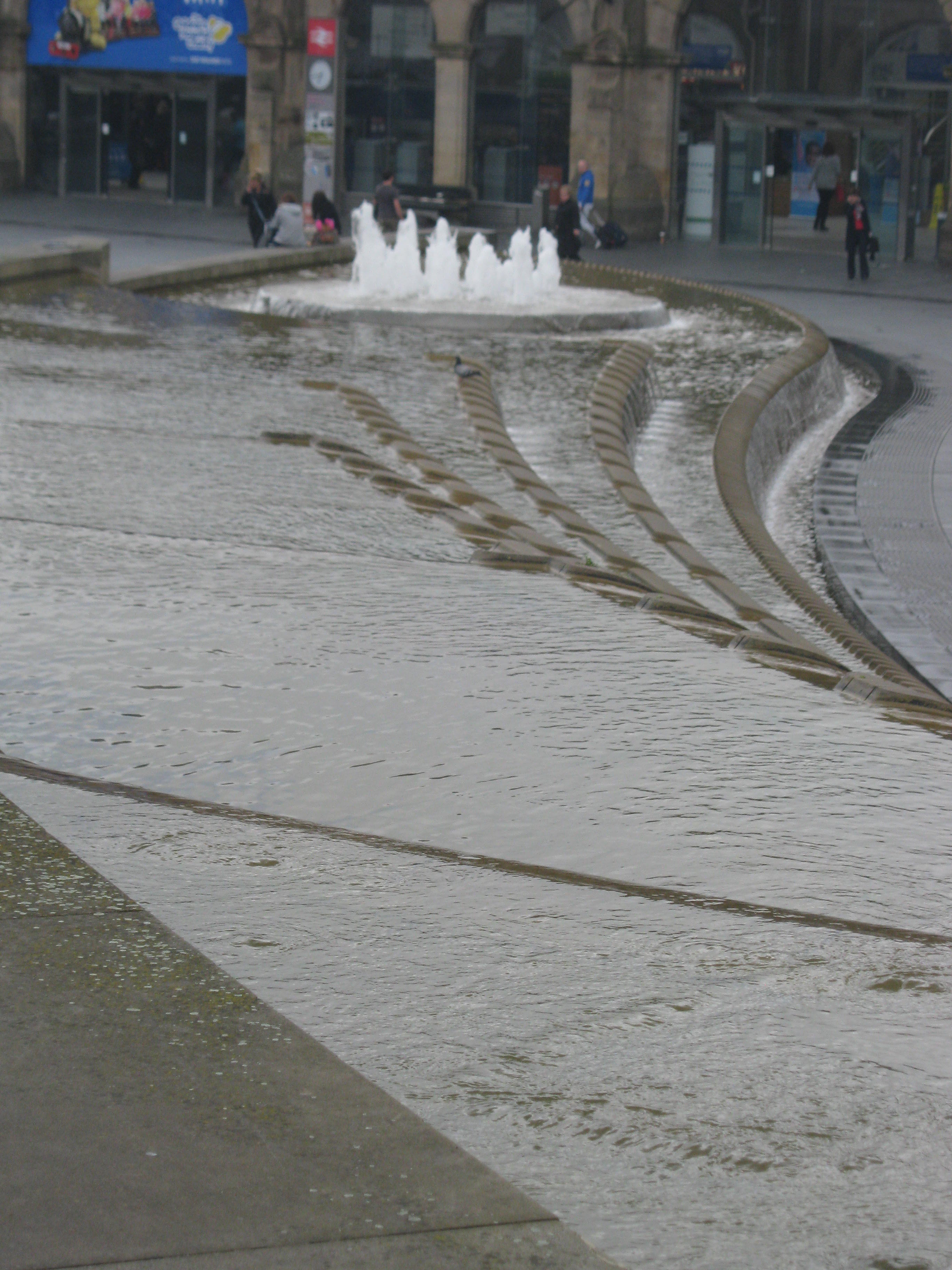 The water feature outside the station didn’t look so attractive on a cloudy day.
