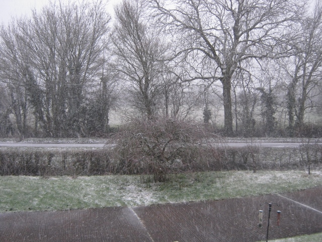 We have stayed at home while the winds have picked up and blown most of the snow from the trees and caused deep drifts everywhere.  The roads to the other villages and our local towns are all blocked.  The depth of the snow in the garden has reduced, not from melting but by being scoured away.  We are hoping that we will be able to get to town later this morning before the next snow arrives.  We need to buy supplies and collect medication for me and for Mum.  Our gas delivery hasn’t arrived and we have nearly run out.  I don’t fancy a few days without central heating!  We have turned the thermostat down and the water heater off to conserve power.