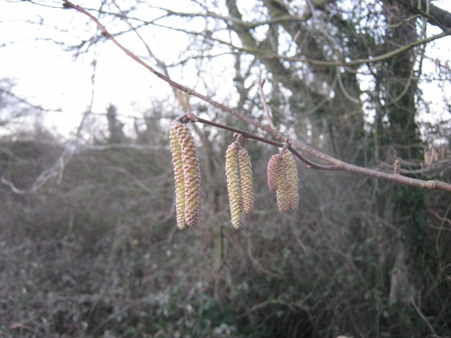 Before the snow arrived I made another attempt at photographing our hazel catkins and found a few female flowers as well.