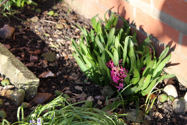 Gardening can be quite difficult in the countryside as we humans are not the only ones who like flowers and shrubs.  Most of our visiting wildlife love them too – as food.  My favourite miniature iris started blooming at the end of January but the deer found them and have eaten all the flowers. A few of my other plants have been pruned severely by the deer and pecked by the pheasants.  The only answer is to cover everything with chicken wire which isn’t attractive and it’s such a bother to have to remove it each time I wish to work on a flowerbed and then remember to put it back again afterwards!  Despite my grumbling, I do feel lucky to live here and to be able to see all the wild creatures that visit us.  Gardening on a plot surrounded by fields is different from gardening in a town or village.  It is impossible to keep wildlife, including weeds like brambles, nettles and thistles, out of the garden.  We have to be more relaxed in our attitude but it is hard not to be disappointed when a flower that is looked forward to for eleven months is eaten before it blooms!  Before Christmas I was looking out of the window at dawn and saw a family of Muntjac deer in the garden a few metres away from me.  A female, a male and a tiny spotted-backed fawn about the size of a large cat.  The baby kept racing about and bouncing on all four legs at once.  As soon as it got near enough to her, the female proceeded to wash him which he tolerated for a while and then ran off again!